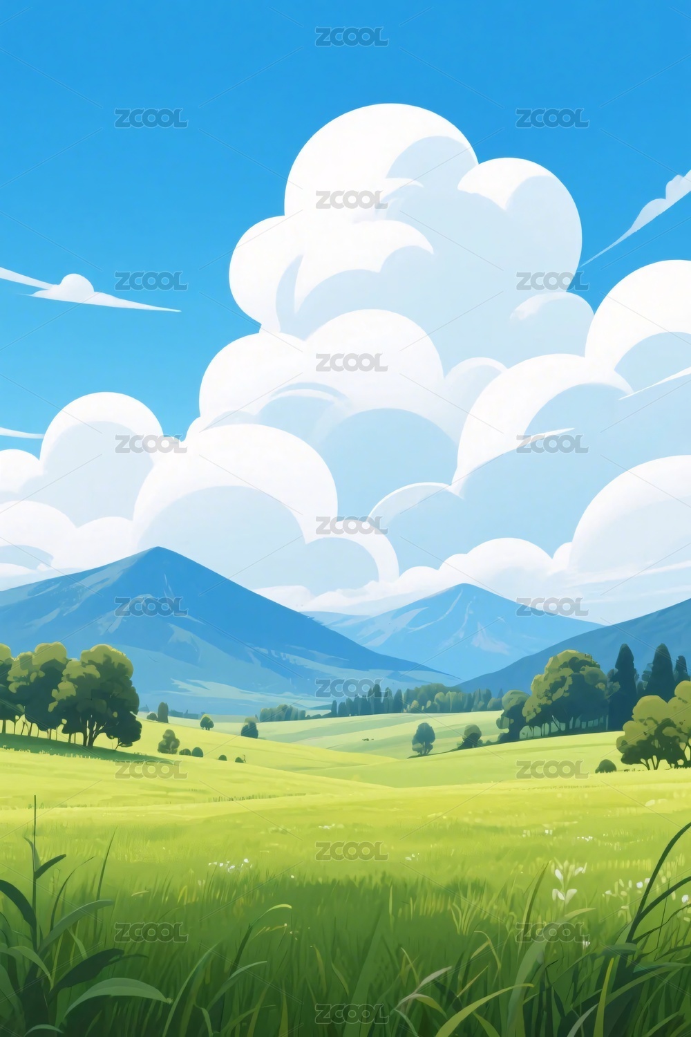 夏日山间清新风景插画