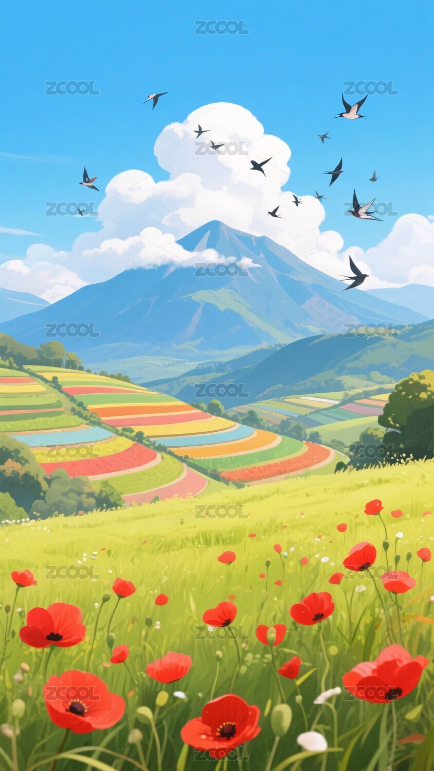 春日田园风景插画