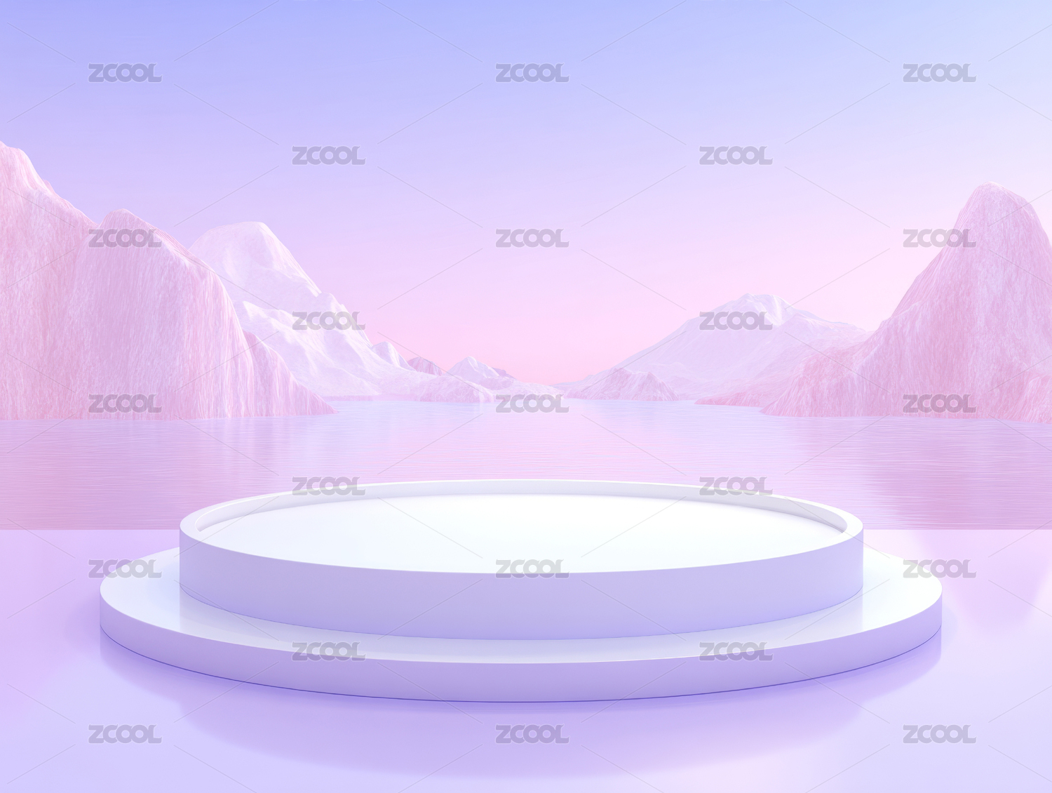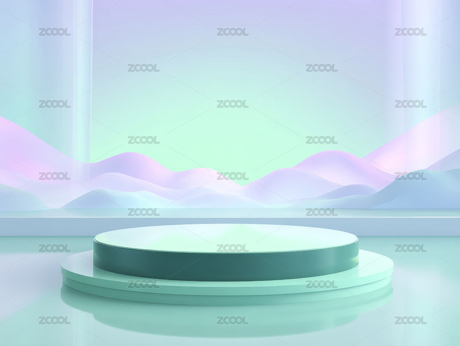 展示台,山景,梦幻,蓝色,柱子,渐变色,简约,背景,圆形,现代