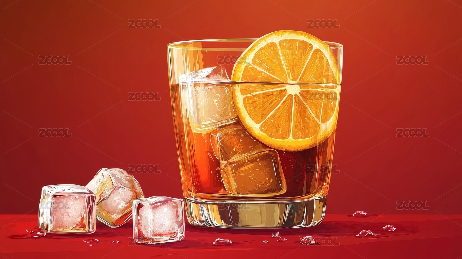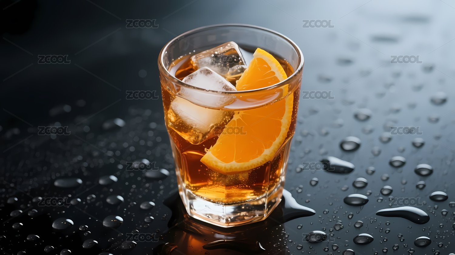 一杯有冰块的甜柠檬茶在玻璃杯中。