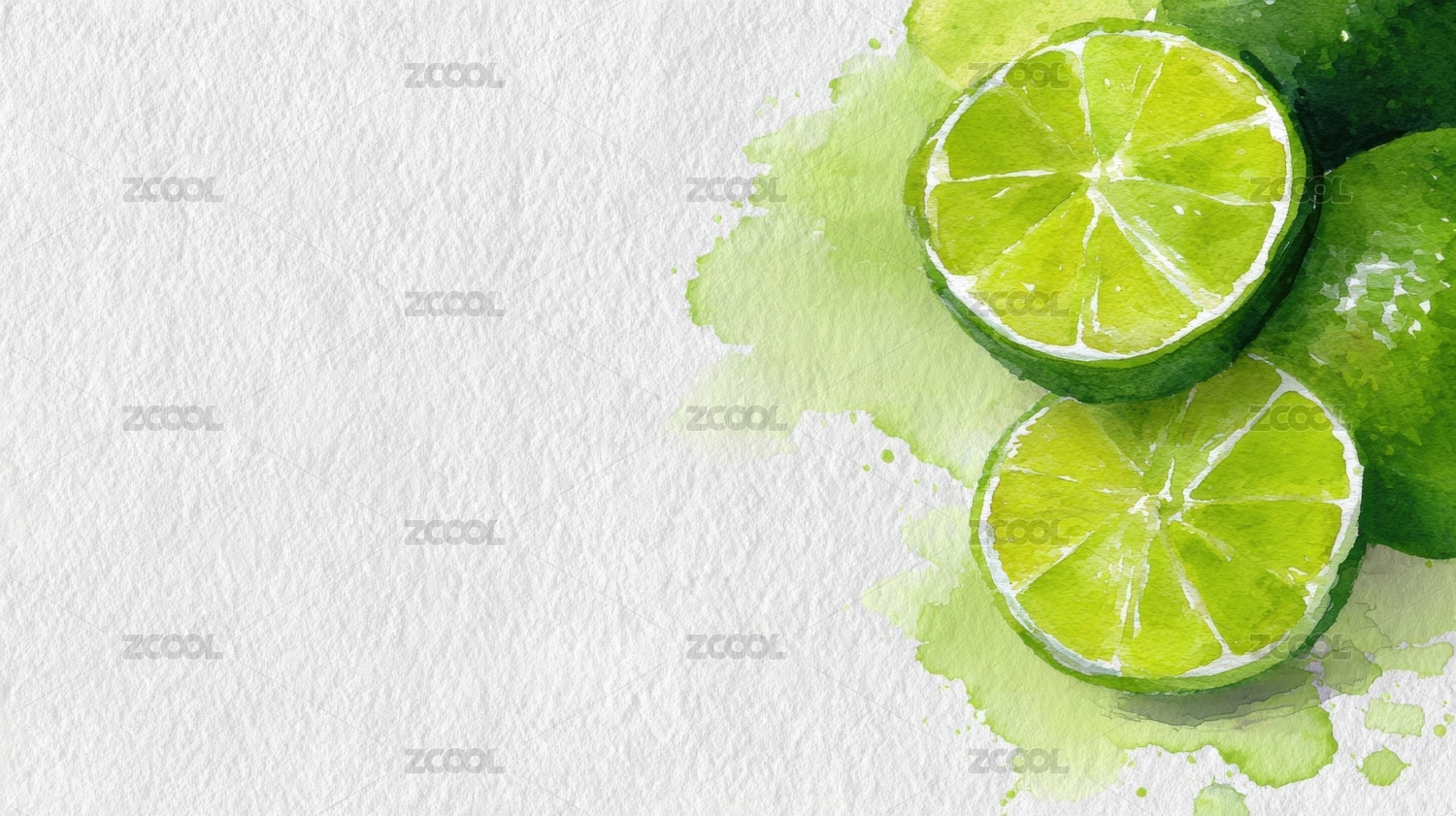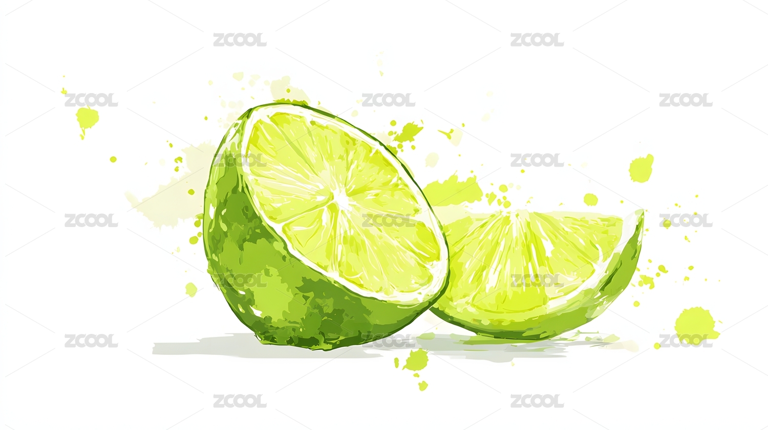 水彩画青柠切片