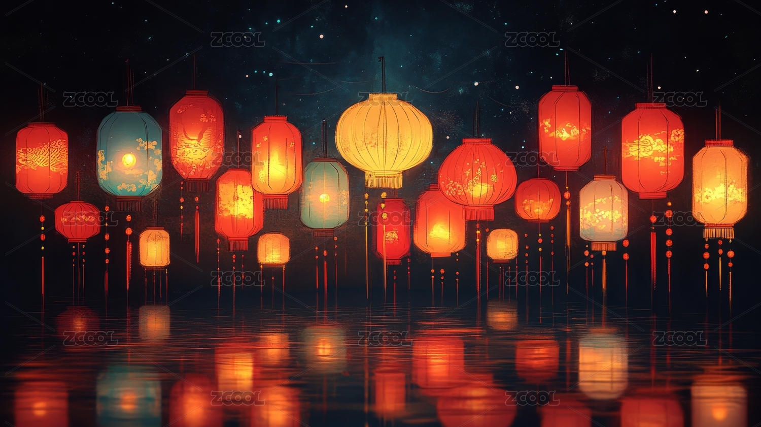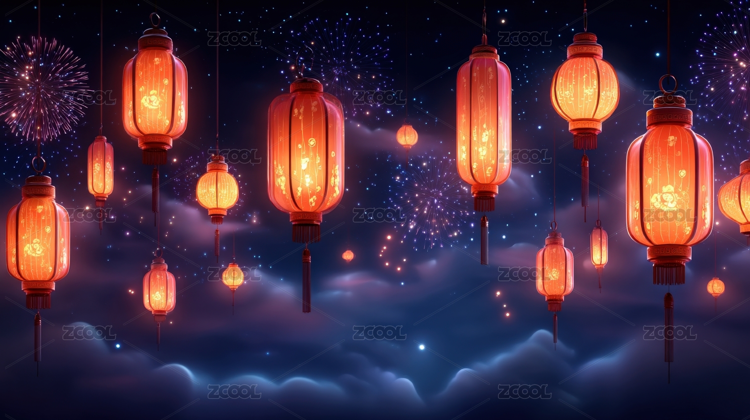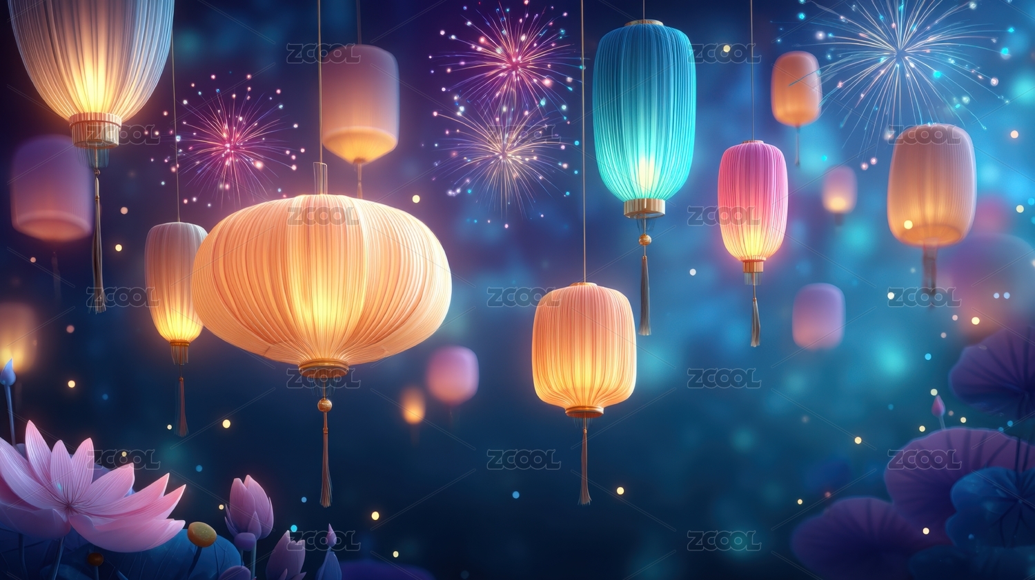 灯笼,烟花,灯光,节日,庆祝,装饰,亚洲,传统,文化,中国