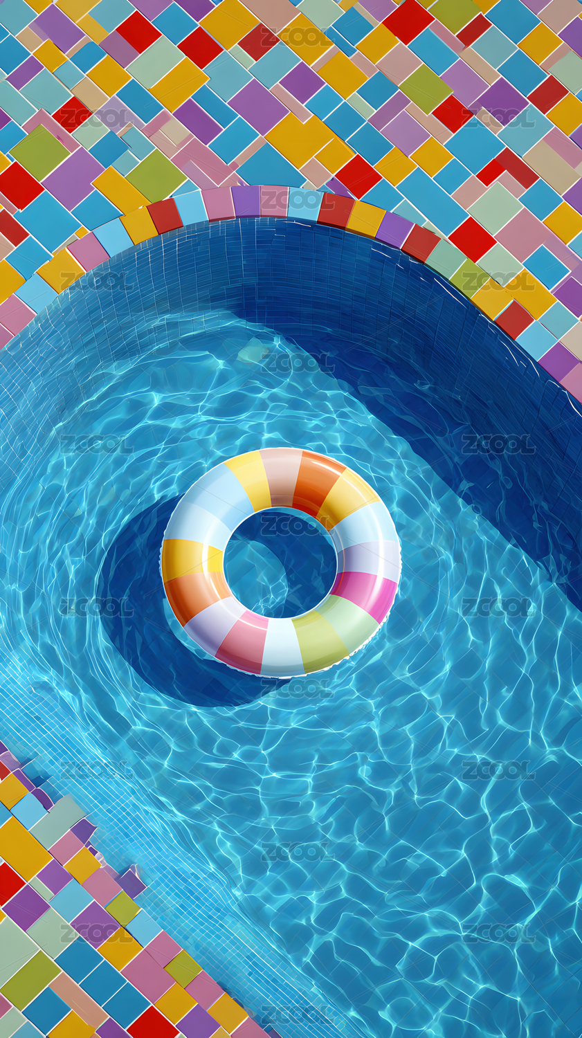 主视觉,泳圈,多彩,色调,泳池,休闲,场景,夏日,清凉,水纹