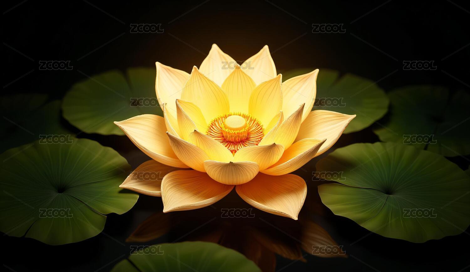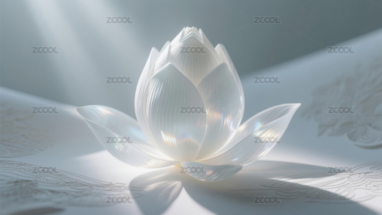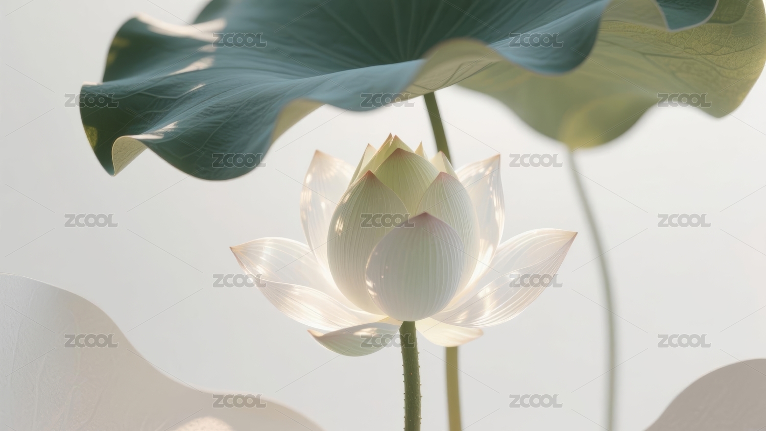 圣洁莲花绽放水光莲影禅意青色莲花插画
