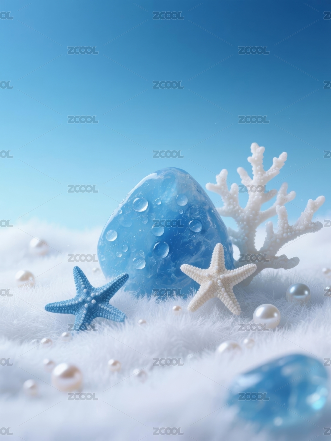 主视觉,清新,自然,场景,海星,珊瑚,珍珠,蓝色,背景,创意