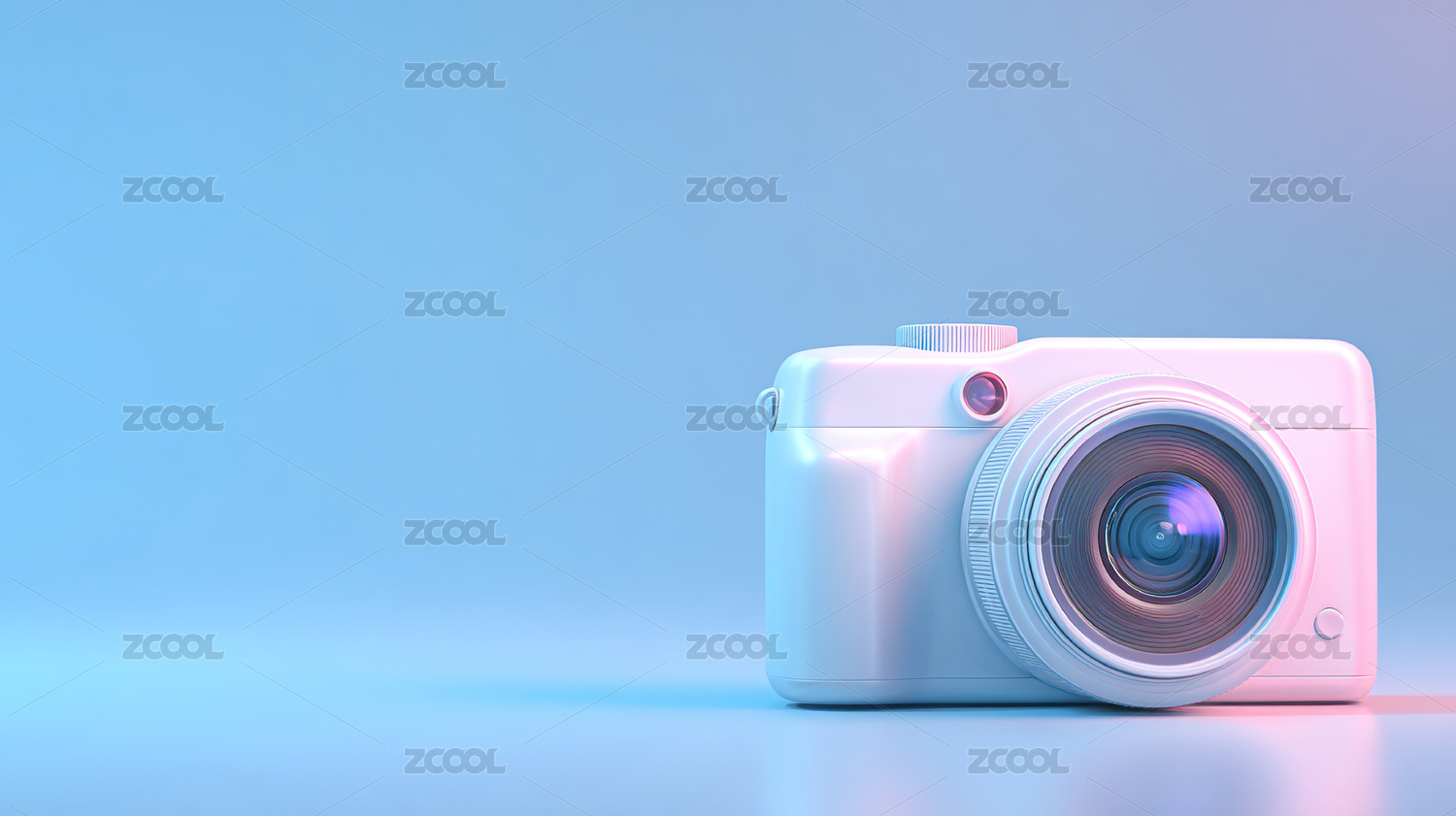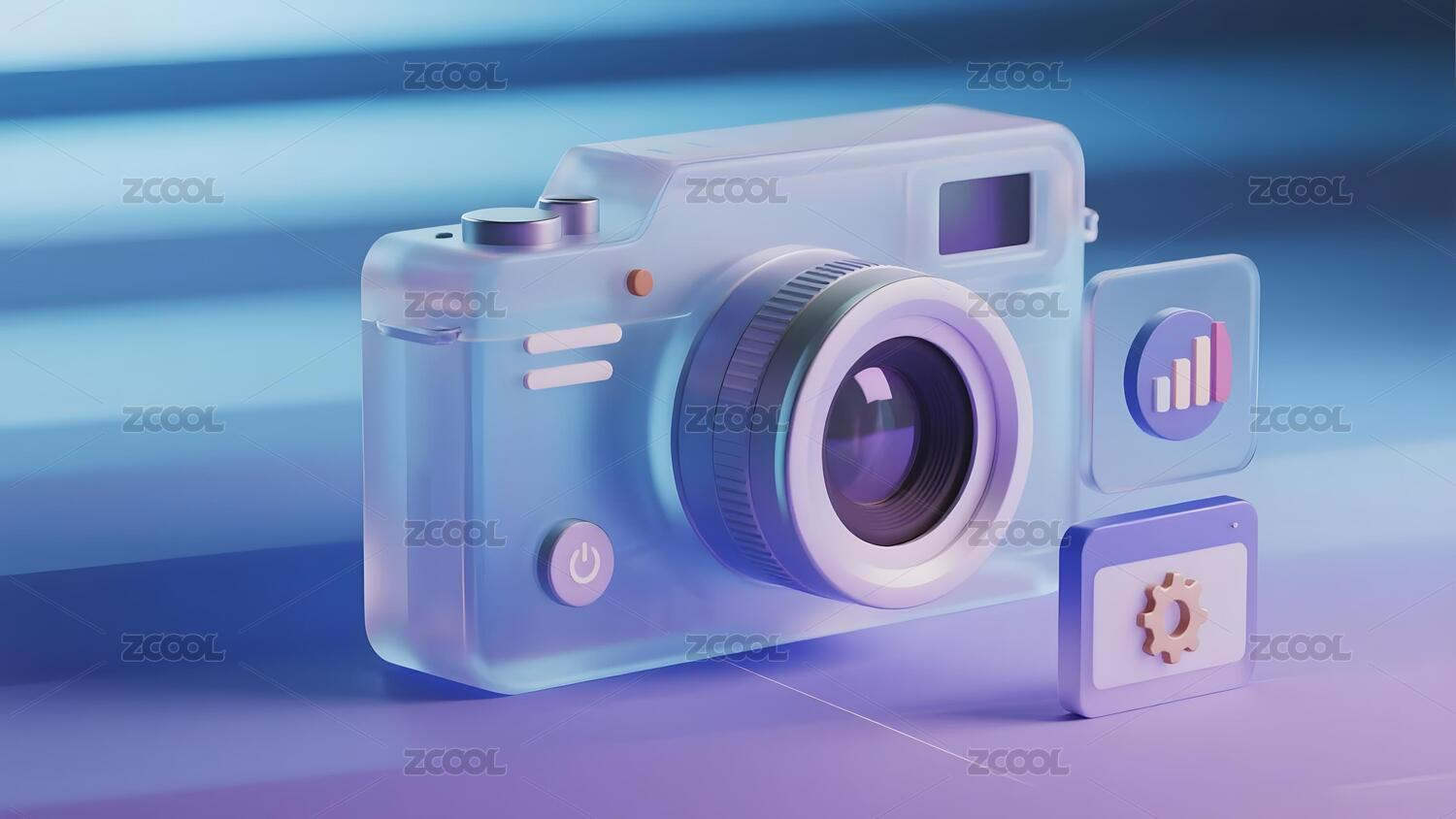 卡通相机漂浮 蓝色背景