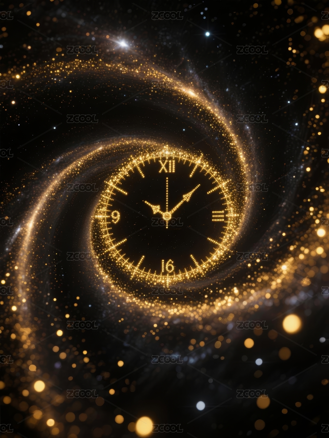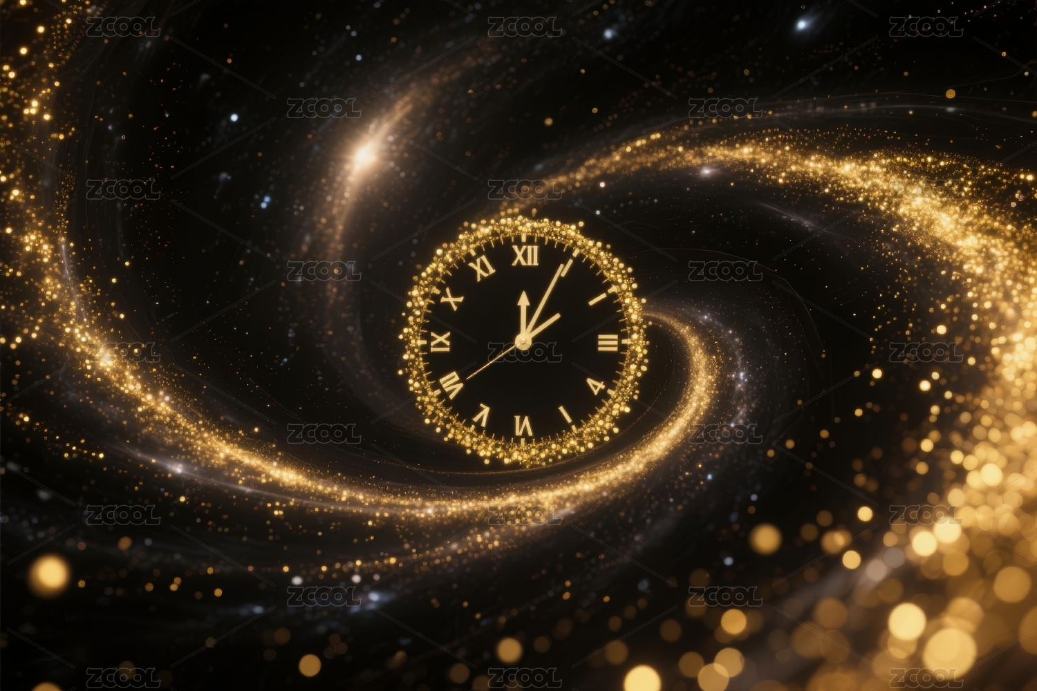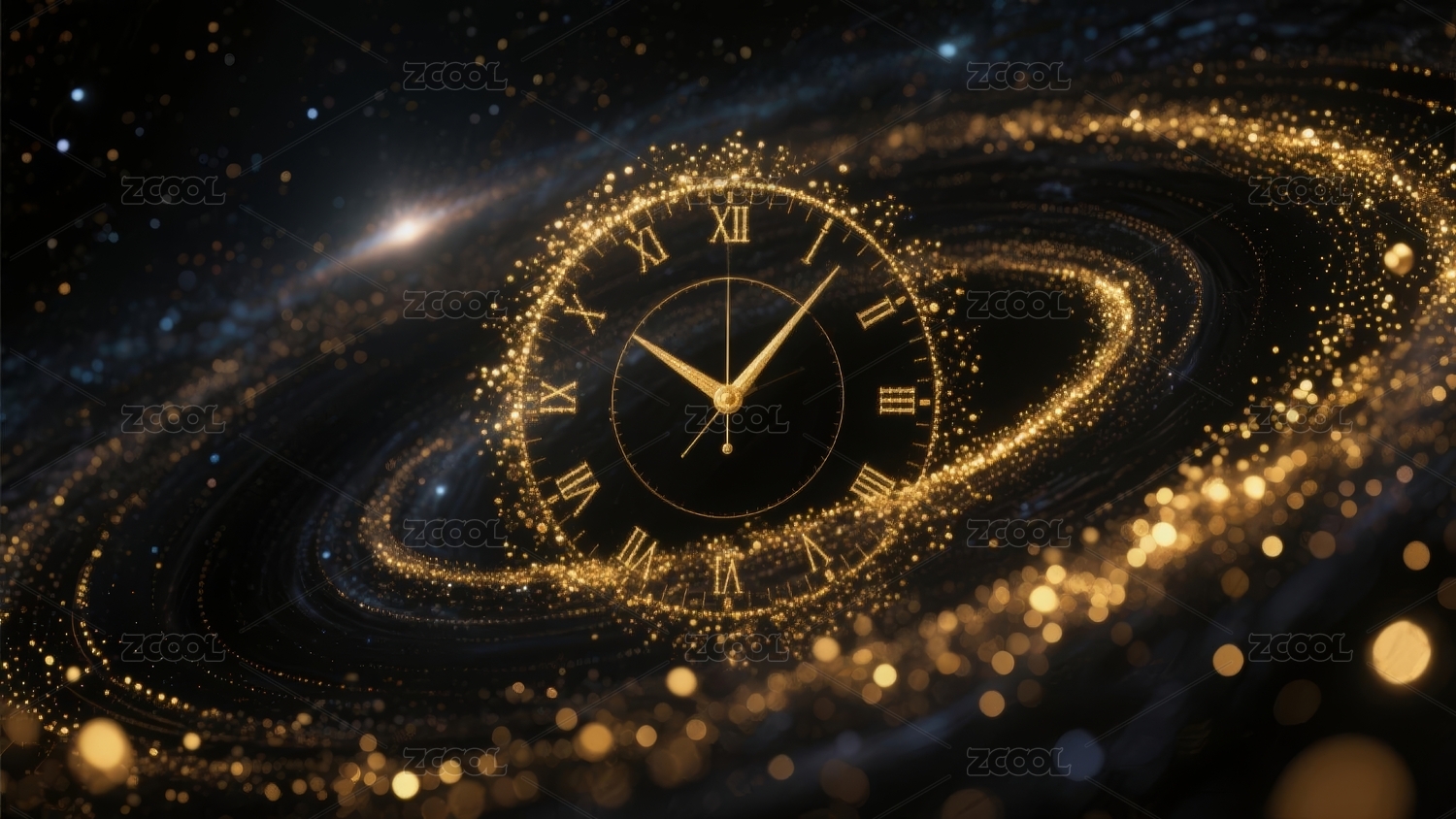 主视觉,场景,背景,装饰,艺术,创意,时钟,金色,宇宙,星空