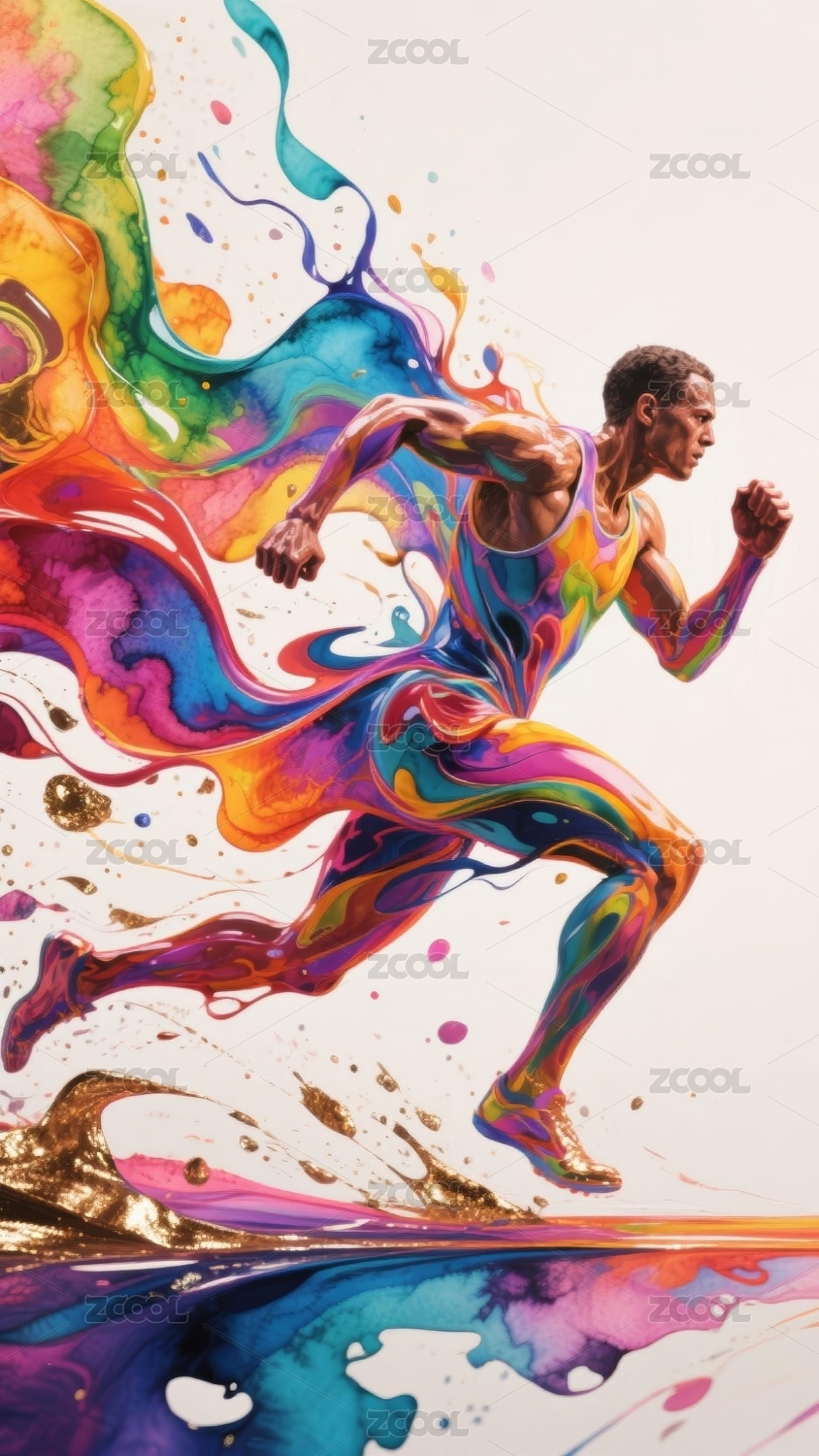 运动国潮比赛竞技跑步抽象彩色奔跑的运动员