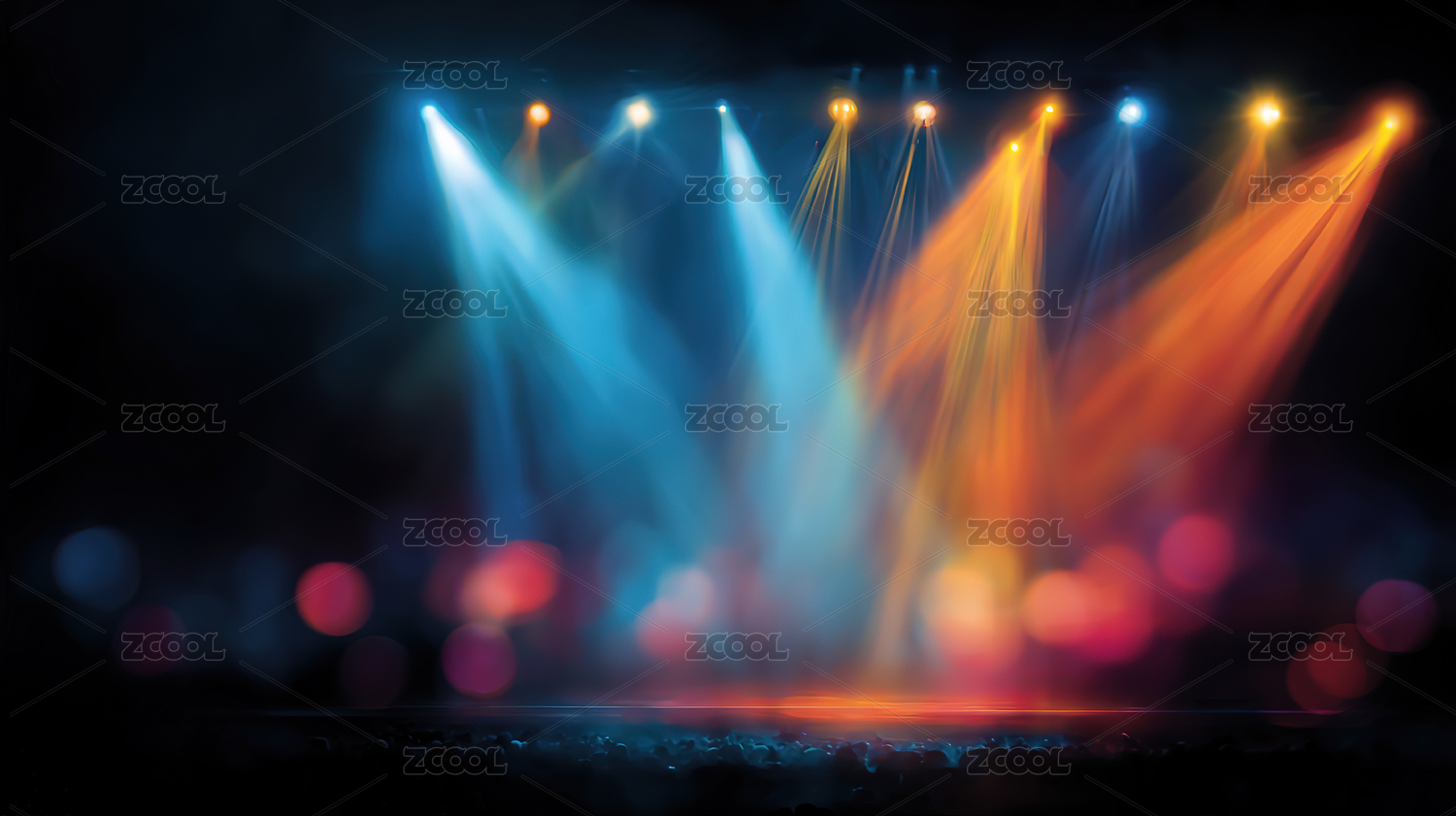 舞台聚光灯照射下的蓝色光影