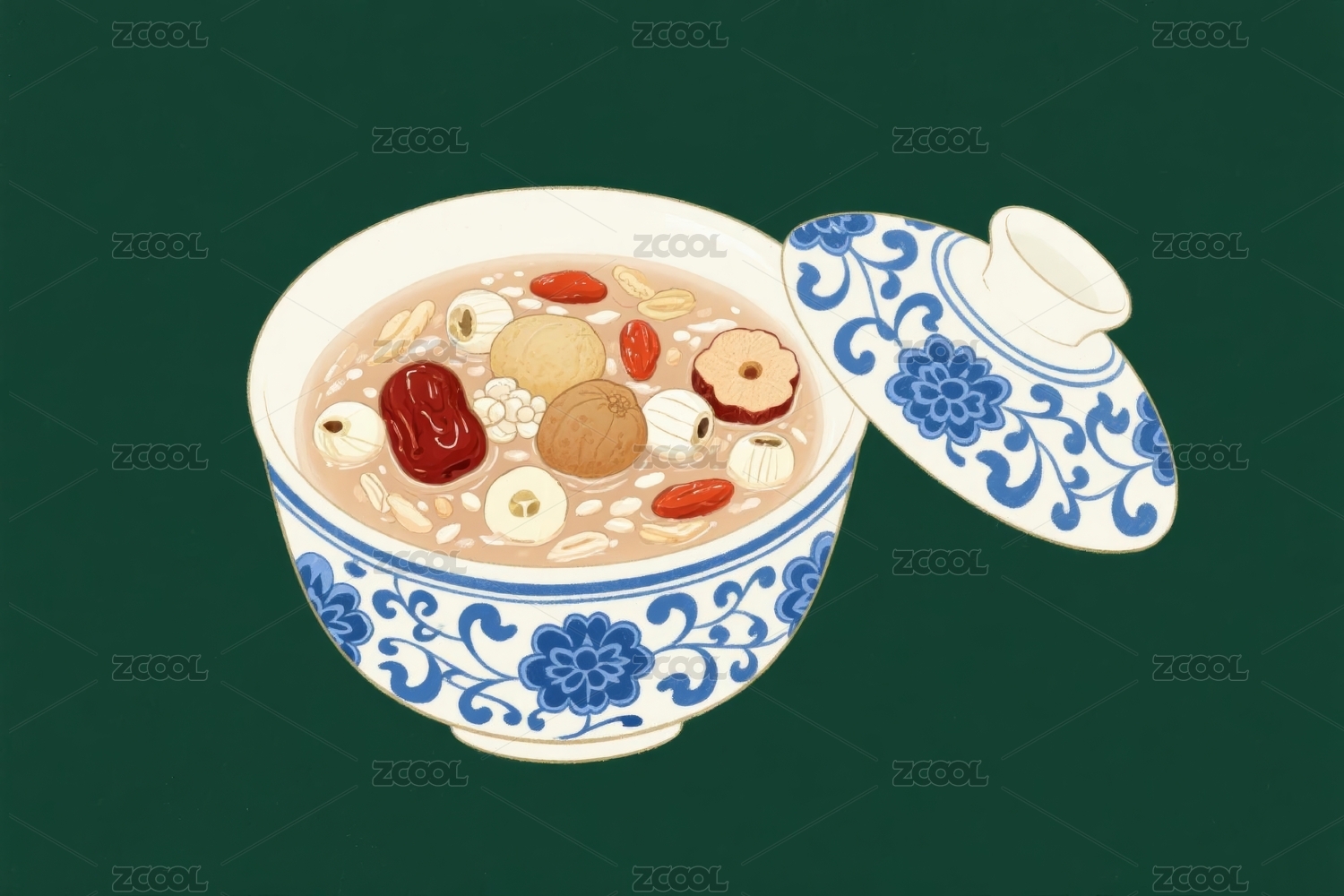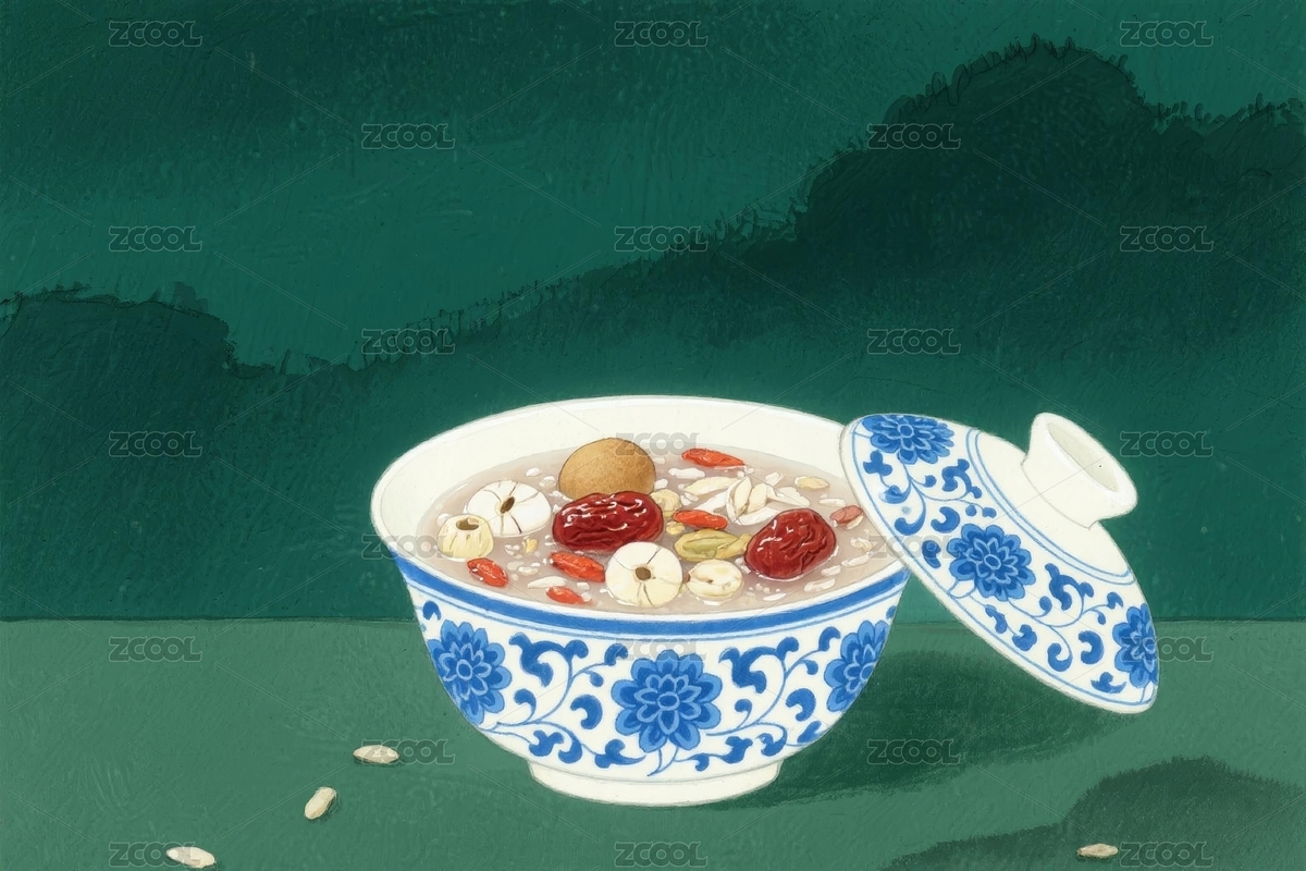 主视觉,美食,青花碗,八宝粥,养生,食材,传统,餐饮,文化,中式