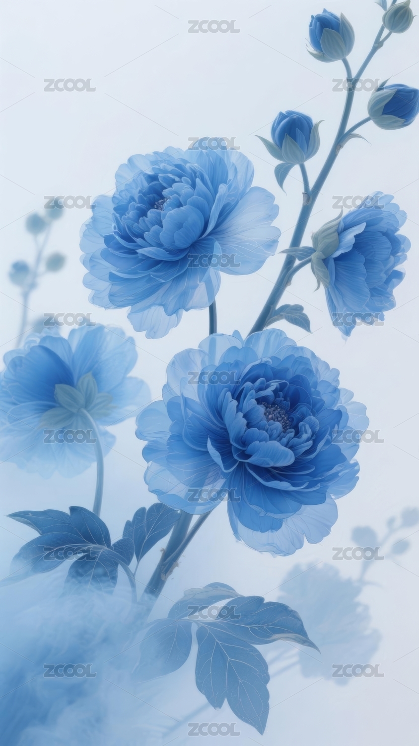 主视觉,艺术,蓝花,清新,花卉,装饰,场景,蓝色,花朵,枝叶