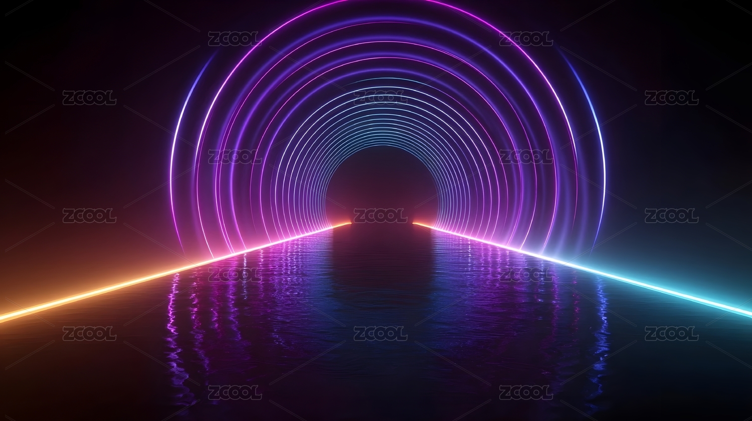 隧道,霓虹,光线,粉色,蓝色,紫色,光影,空间,科技,现代