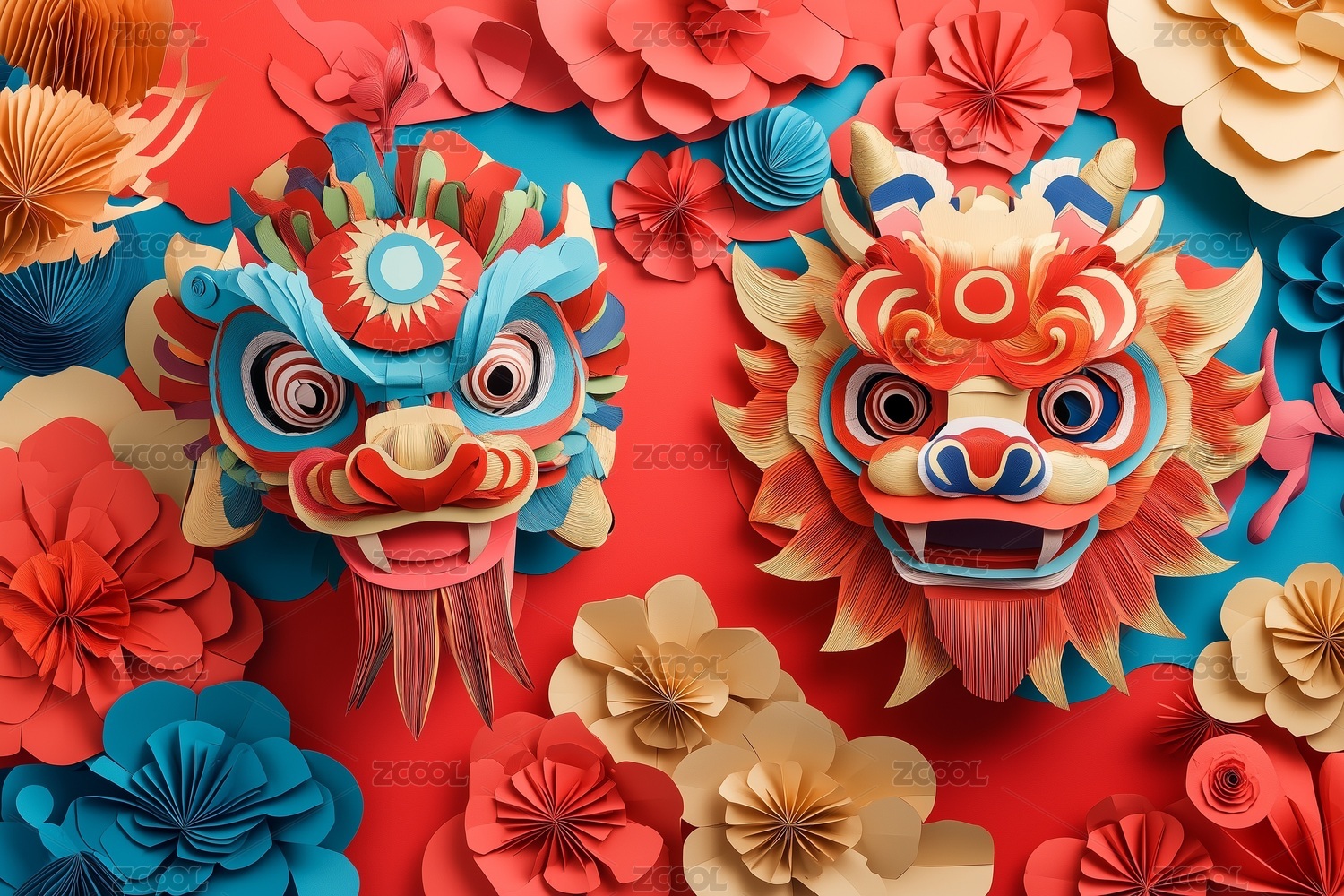 图案,中国风,传统,威武,红色,金色,装饰,艺术,节日,庆典