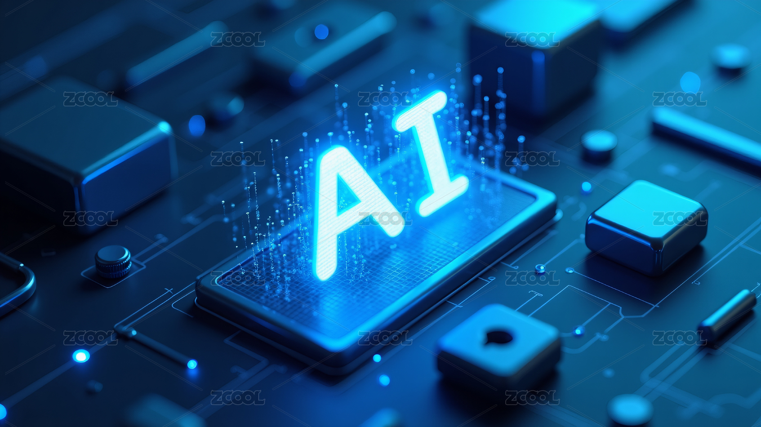 蓝色AI标志与电路板