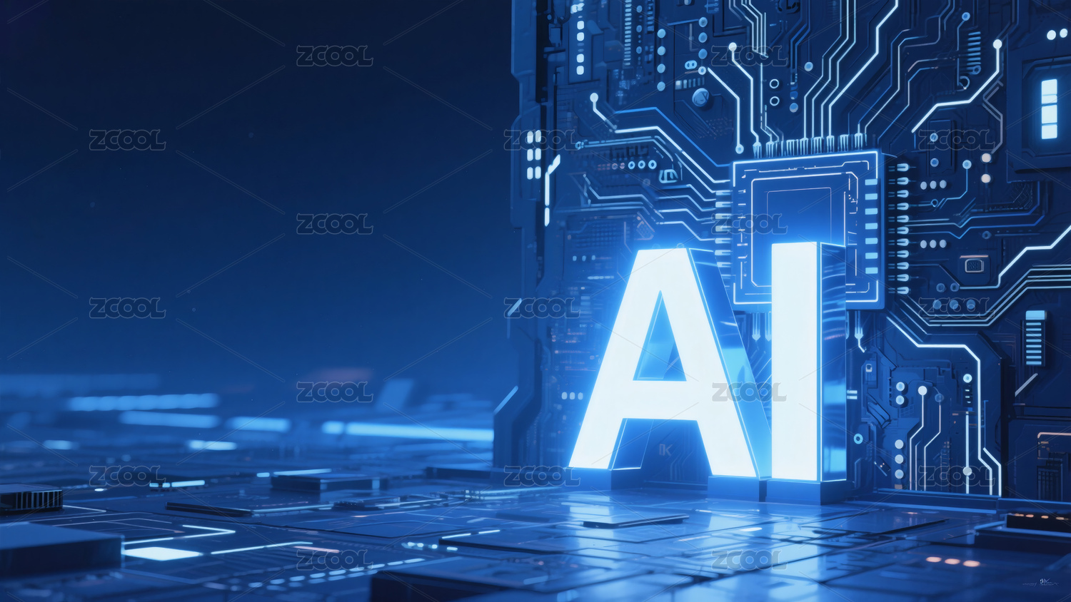 AI技术核心电路板概念图