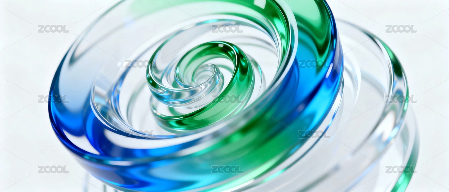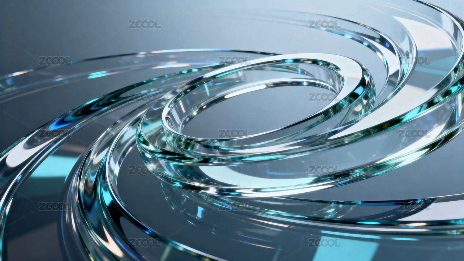 蓝色透明的圆环玻璃特写,干净科技感背景