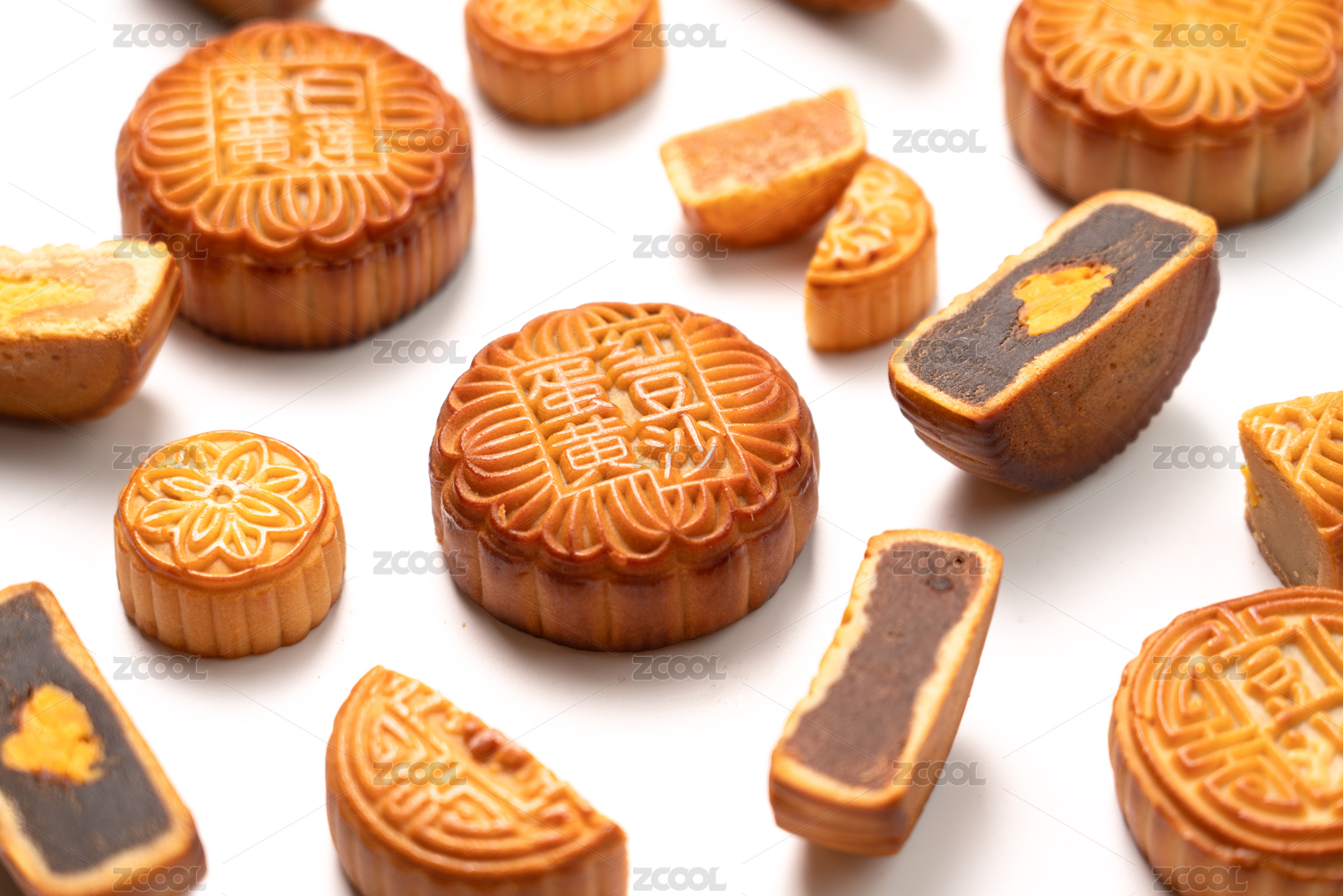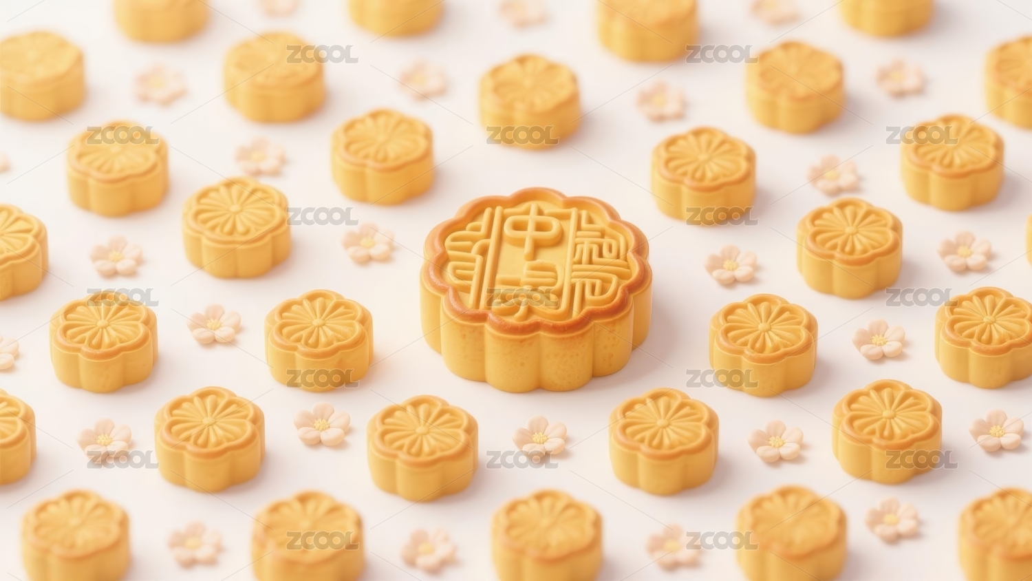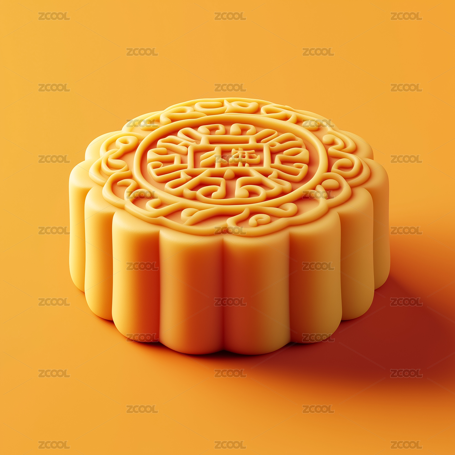 鲜橙色芒果味的冰皮月饼特写,表面光滑,放