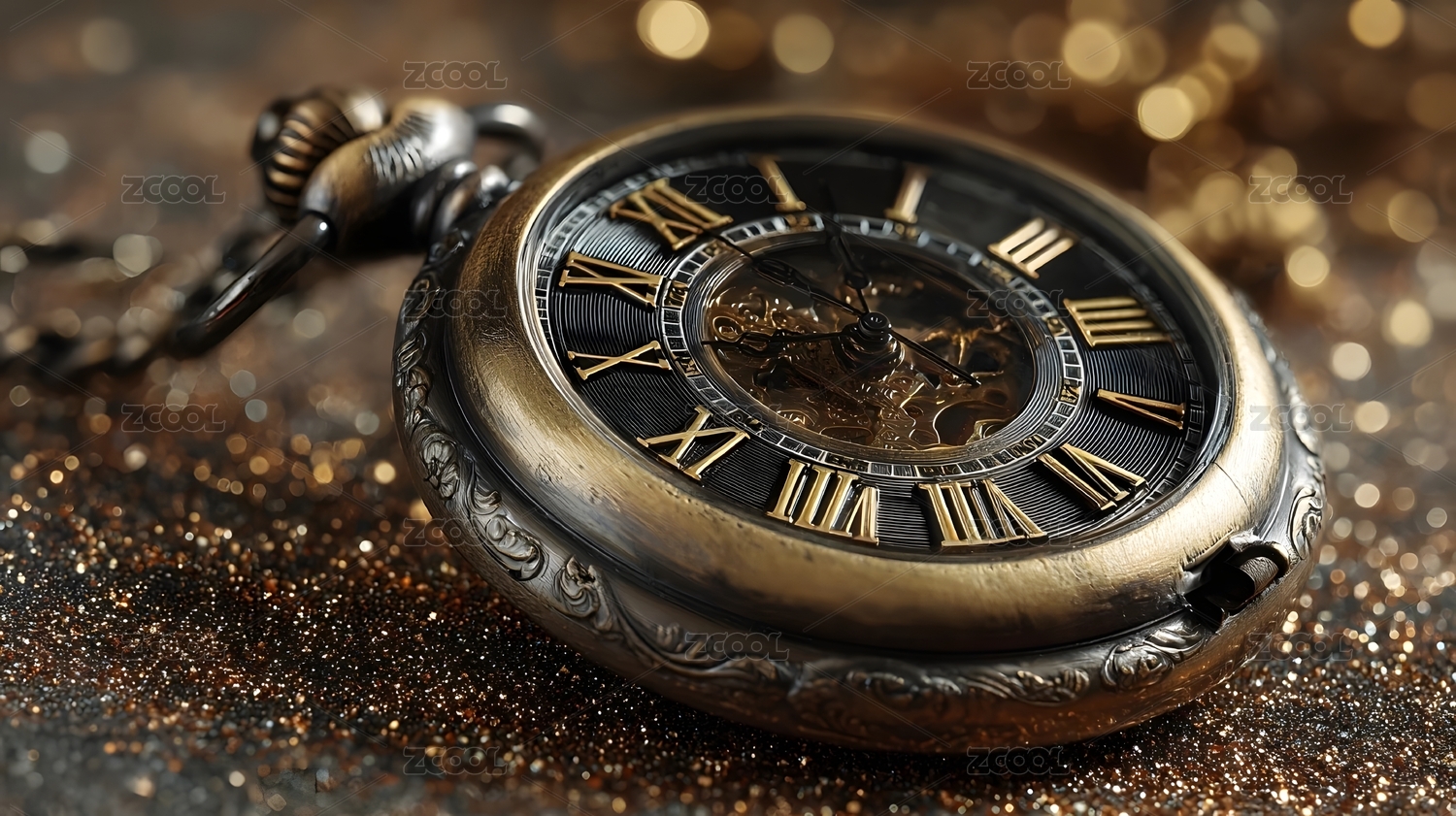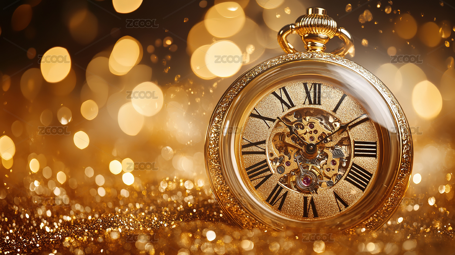 闪耀的金色怀表与新年氛围
