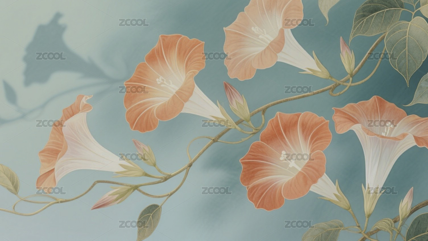 牵牛花淡彩风花卉装饰场景