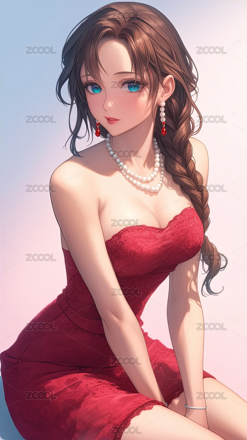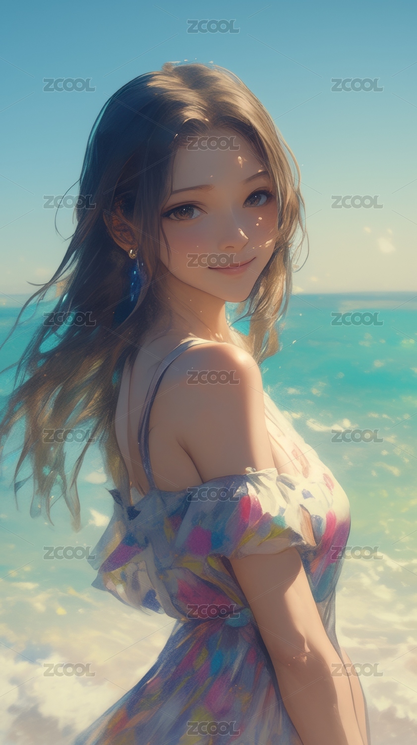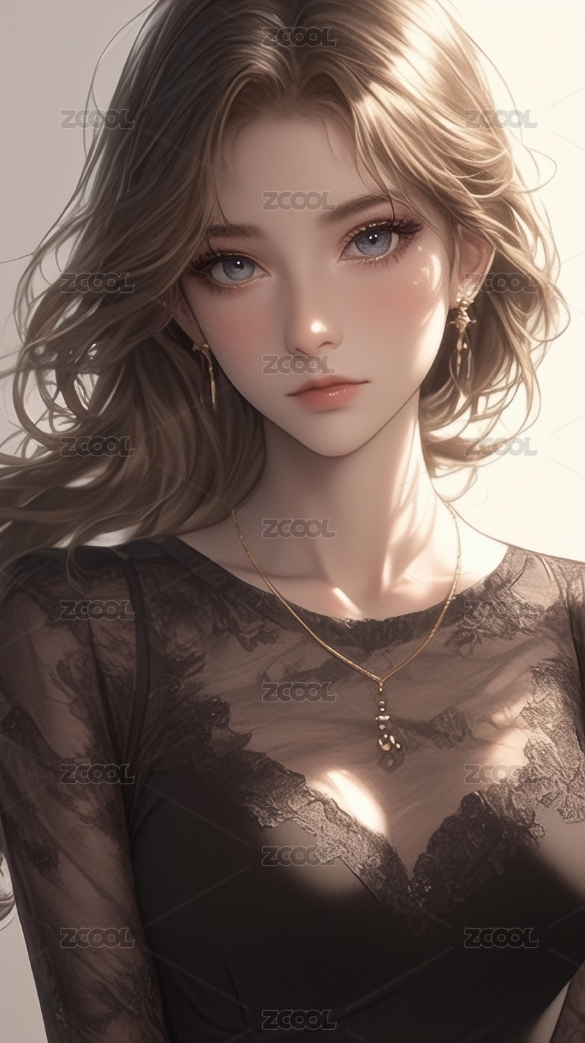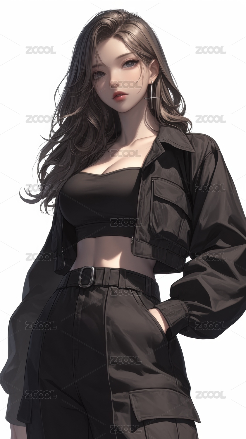 穿着时尚蓝色上衣的金发动漫美少女人物插画