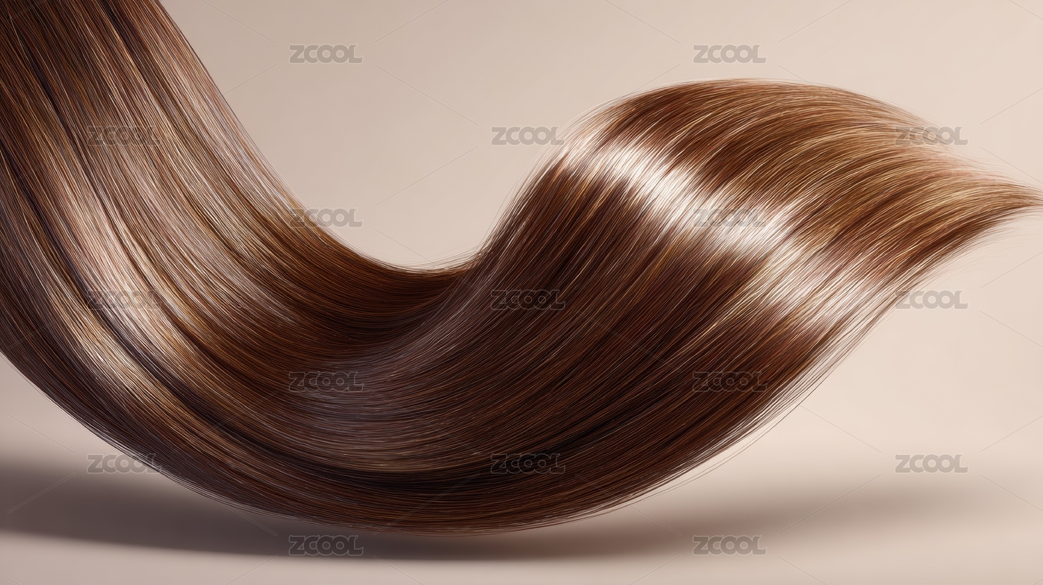 棕色波浪秀发在粉色背景上,柔顺光泽质感