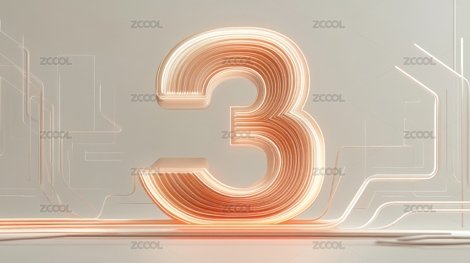 数字3,奢华,科技,黄金,硬币,讲台,未来感,现代,光泽,富贵