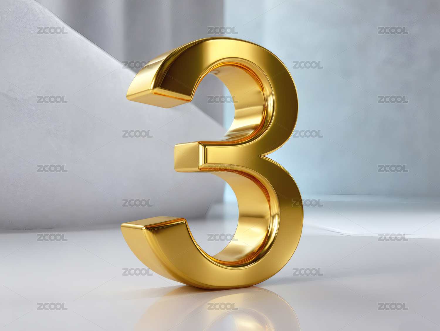 数字3,奢华,科技,黄金,硬币,讲台,未来感,现代,光泽,富贵