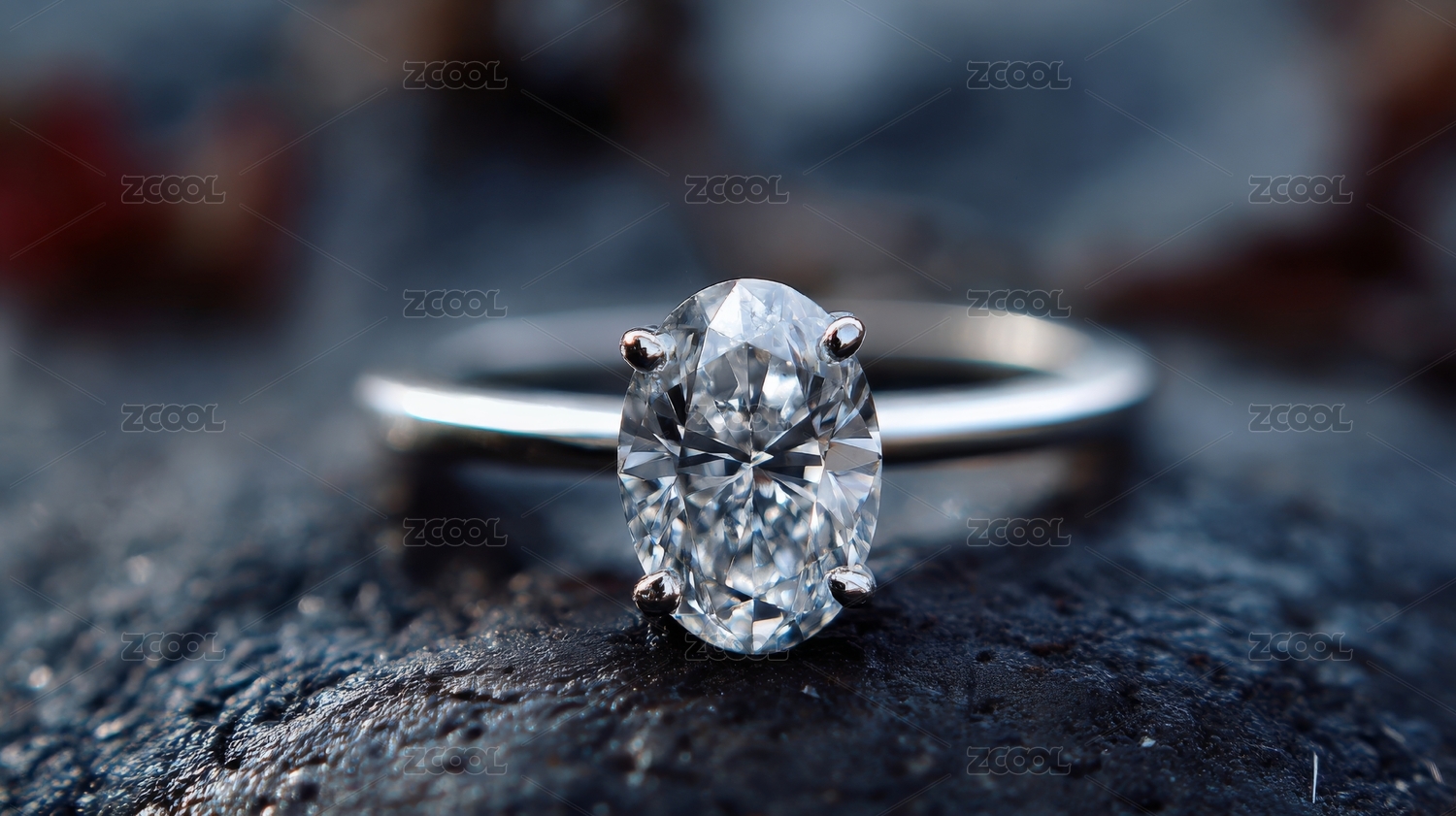 蓝色背景上一枚精美钻戒