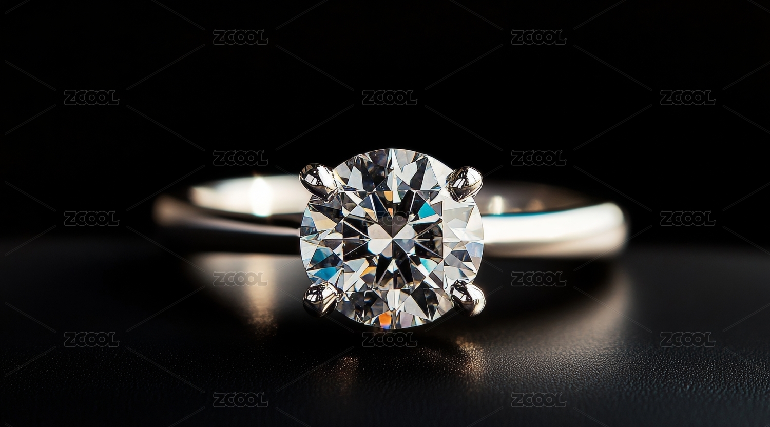 黑背景下的钻石戒指特写