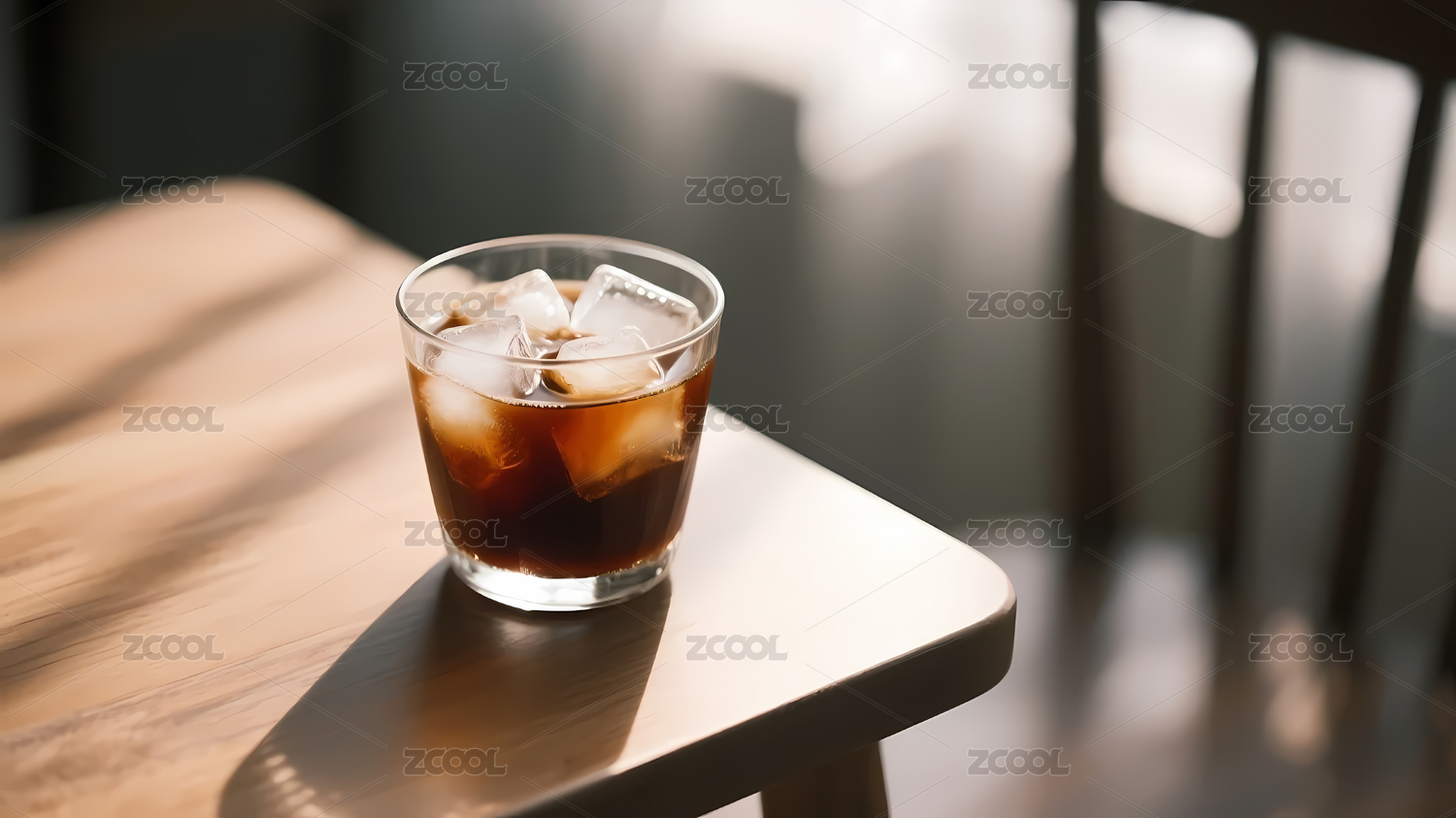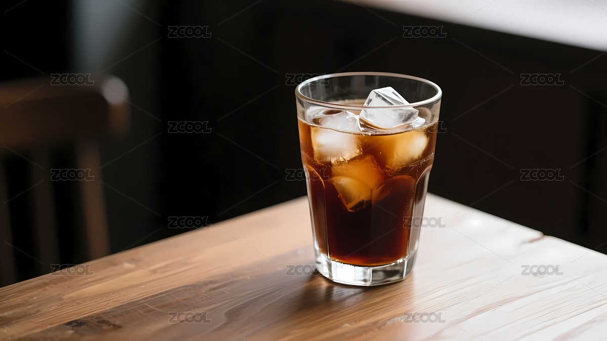 桌面上的杯子里美味香气四溢的冰美式咖啡
