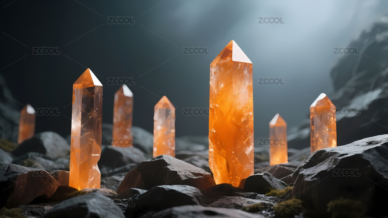 背景,深色,氛围,橙色,水晶,柱,岩石,雾气,暗,庄严