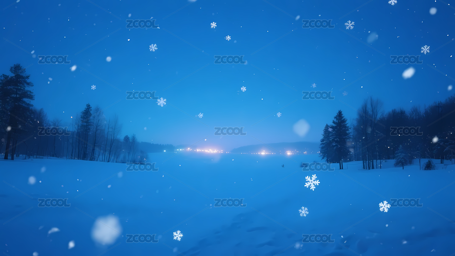 蓝色,白色,雪花,天空,地平线,灯光,树木,宁静,雪地,远处