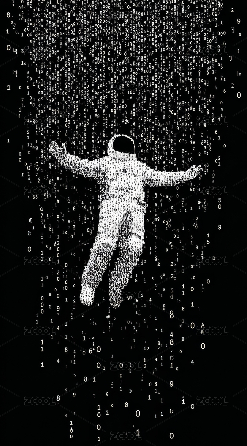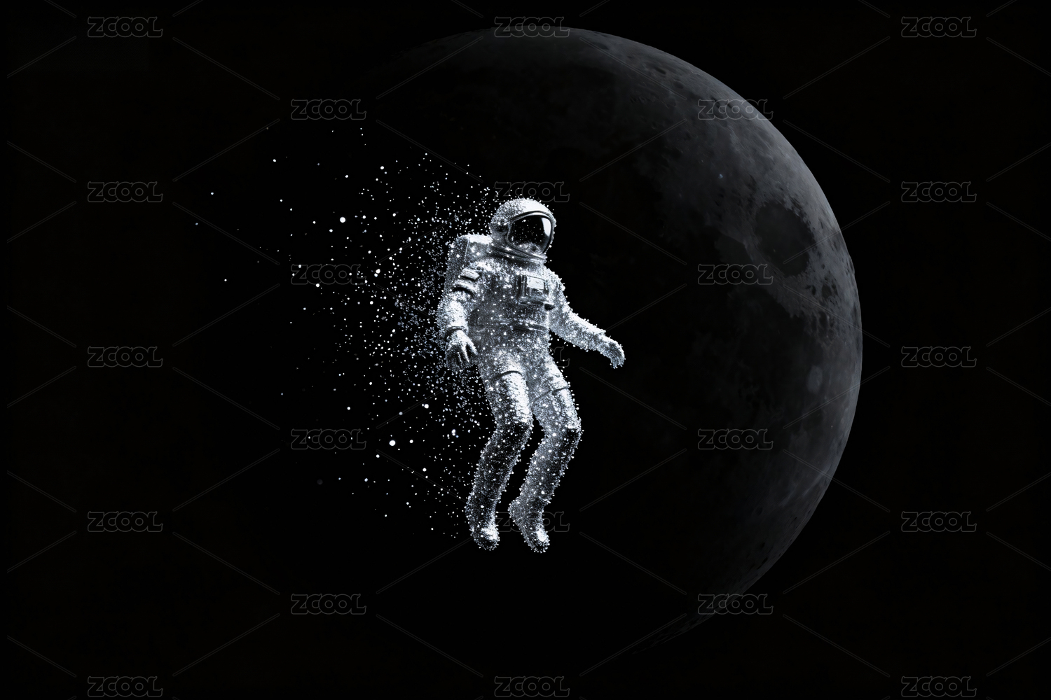 创意极简黑色背景光点汇聚航天员宇航员素材
