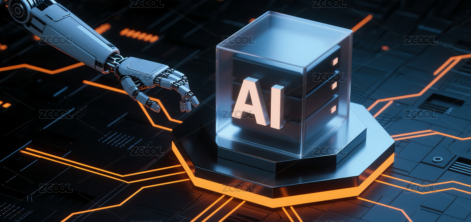 机器人手持AI方块科技感深邃背景