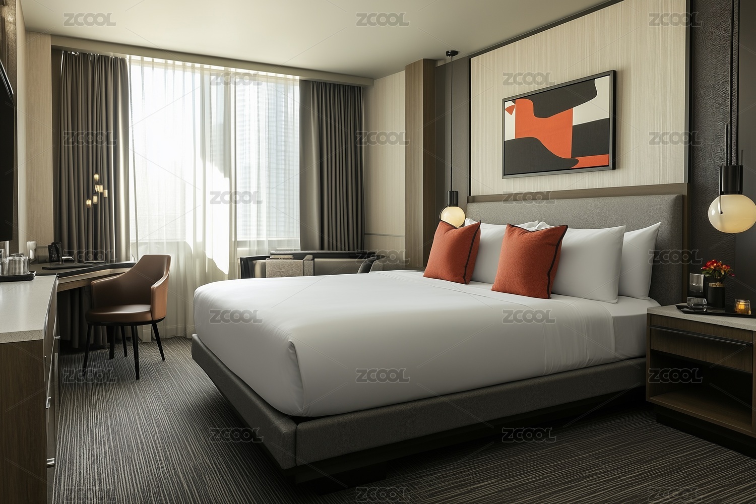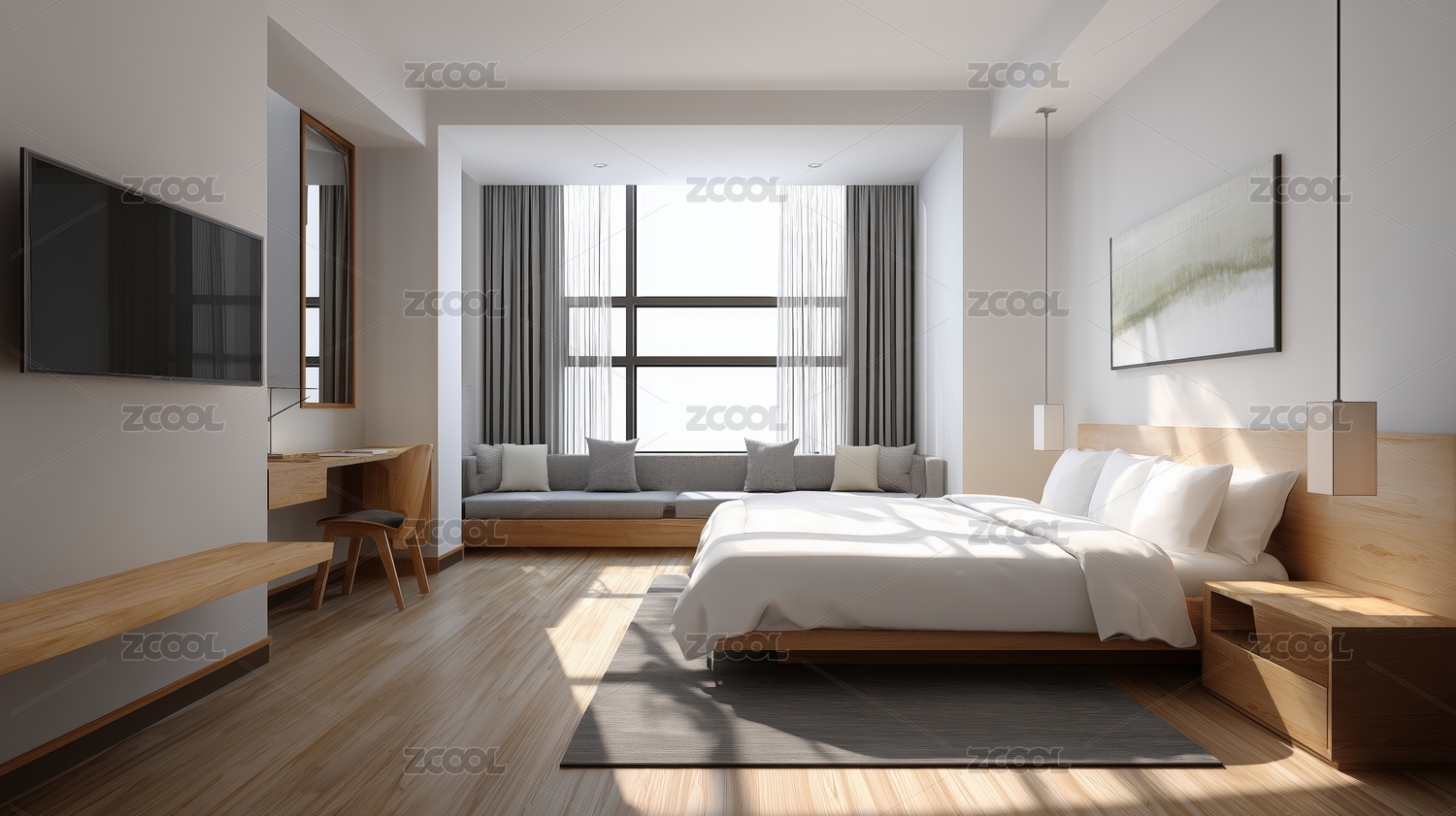 卧室,设计,酒店,床,窗户,家具,装饰,灯具,地毯,舒适