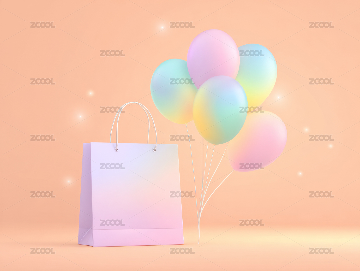 气球,购物袋,彩色,橙色,背景,简约,节日,礼品,装饰