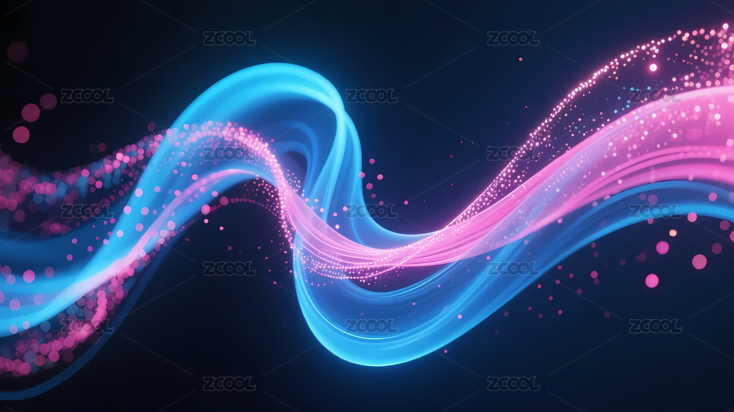背景,深色,蓝色,线条,发光,波浪,光点,粉色,神秘,流动