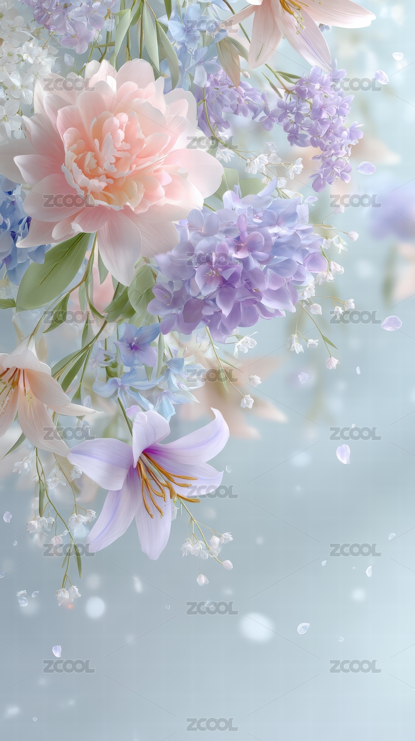 艺术,花卉,梦幻,光点,枝叶,蓝色,淡雅,粉色