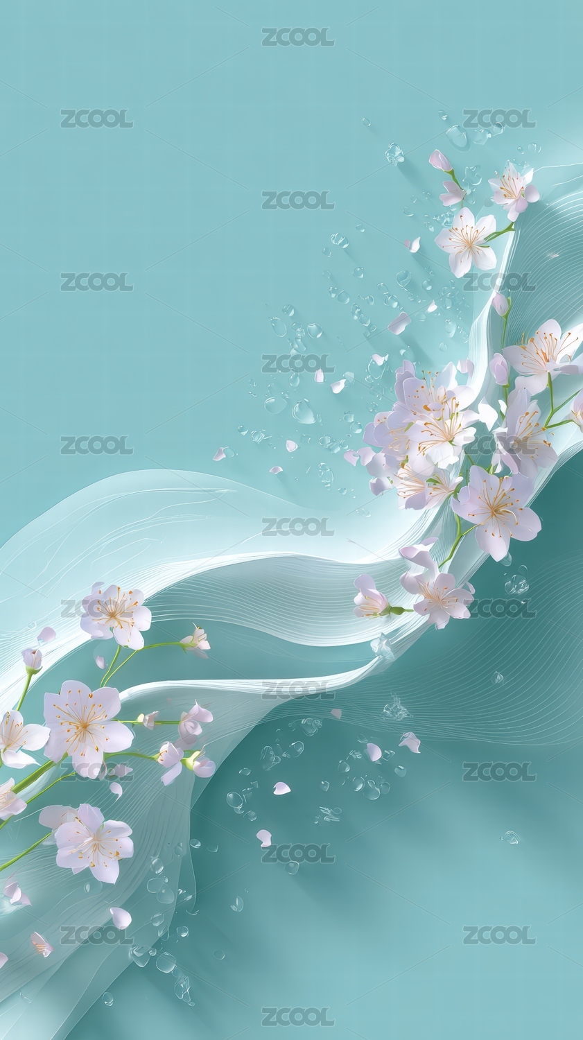 清新樱花与流线水珠的梦幻场景
