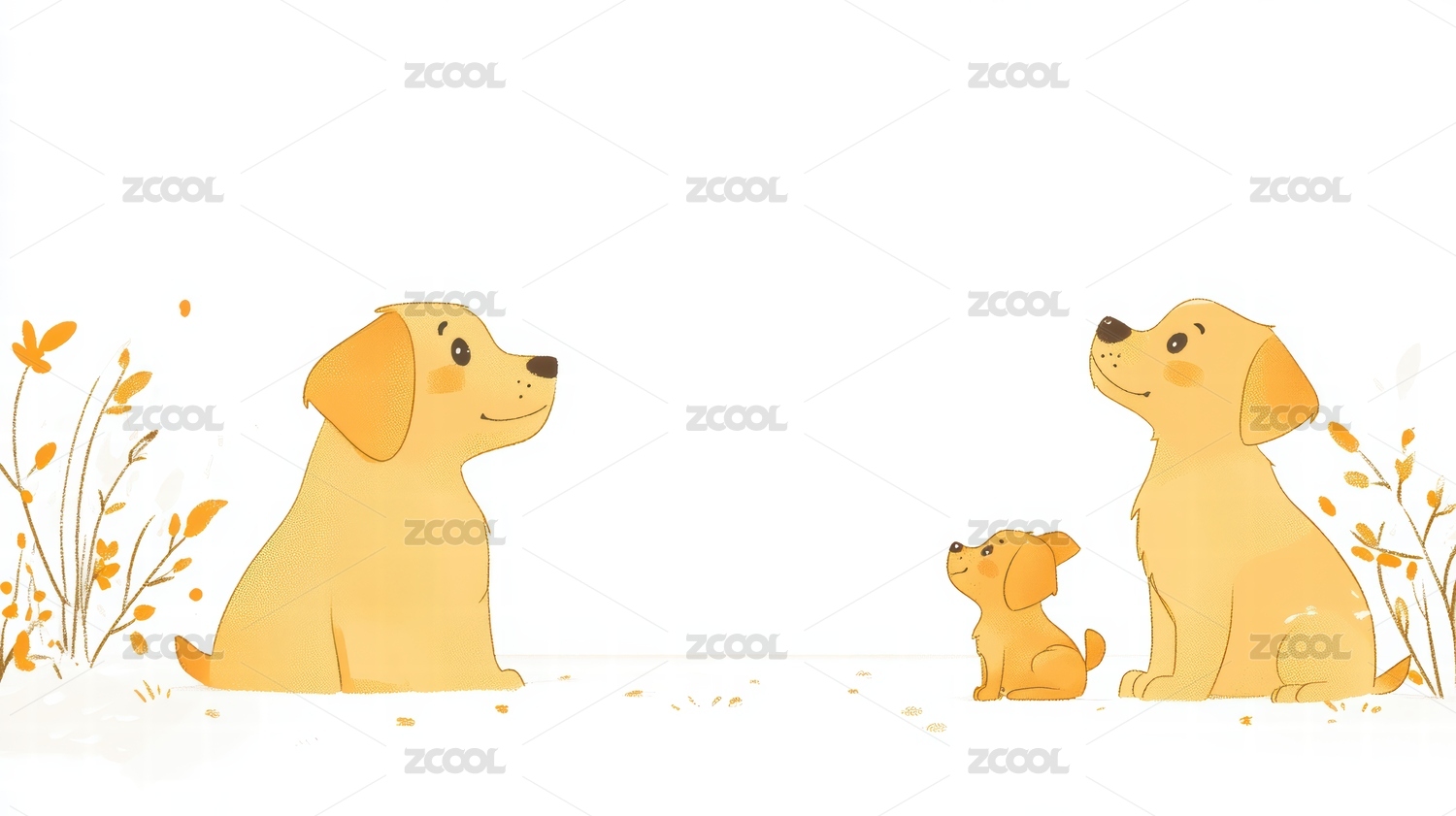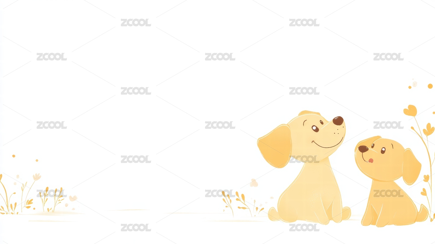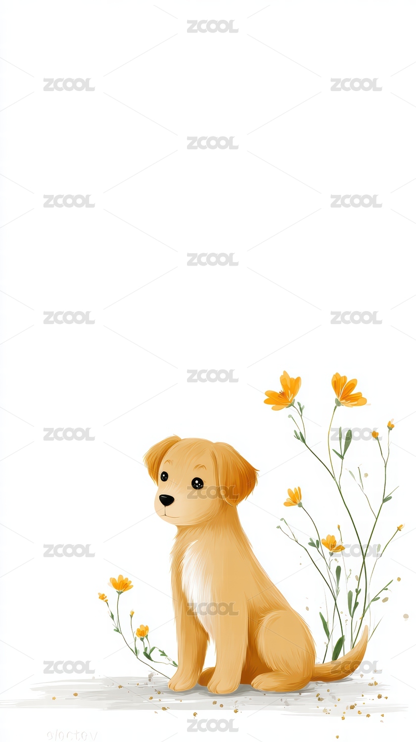 背景,水彩,温馨,自然,小狗,花丛,黄色,对视,安静