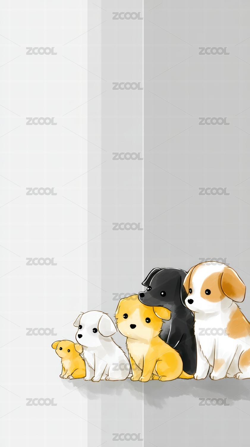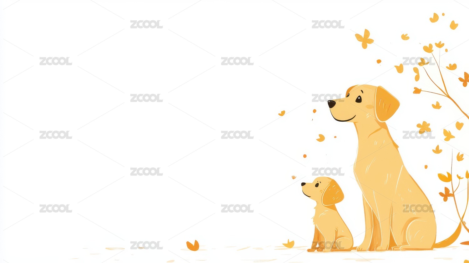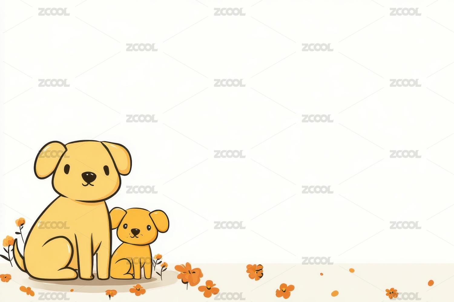 背景,水彩,温馨,自然,小狗,花丛,黄色,对视,安静