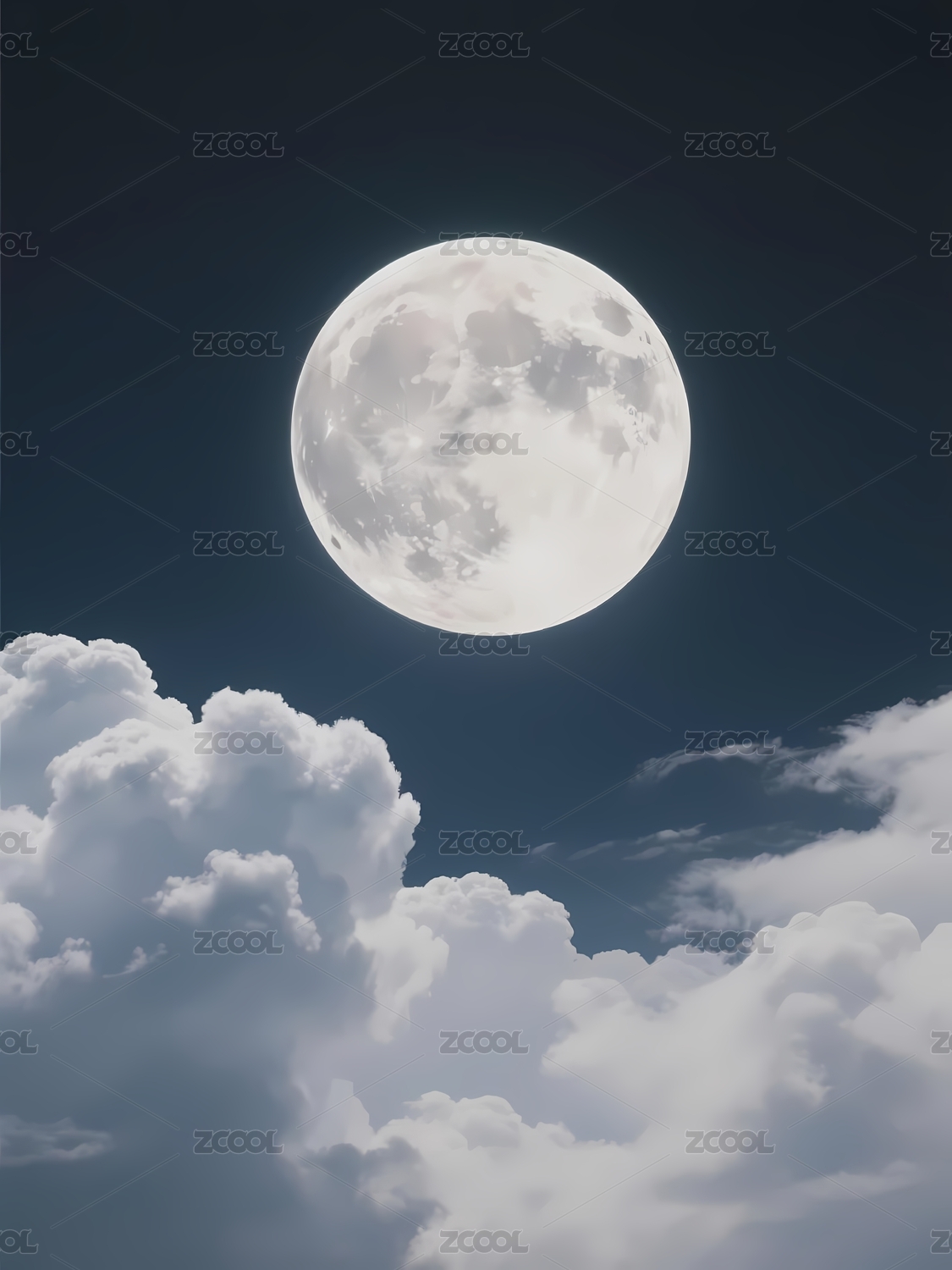 满月高悬于云层之间