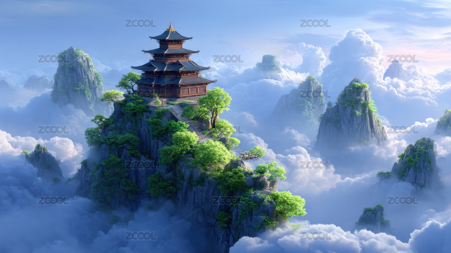 云海仙境中的寺庙
