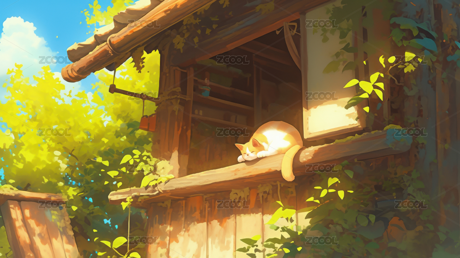 乡镇小屋日漫风插画