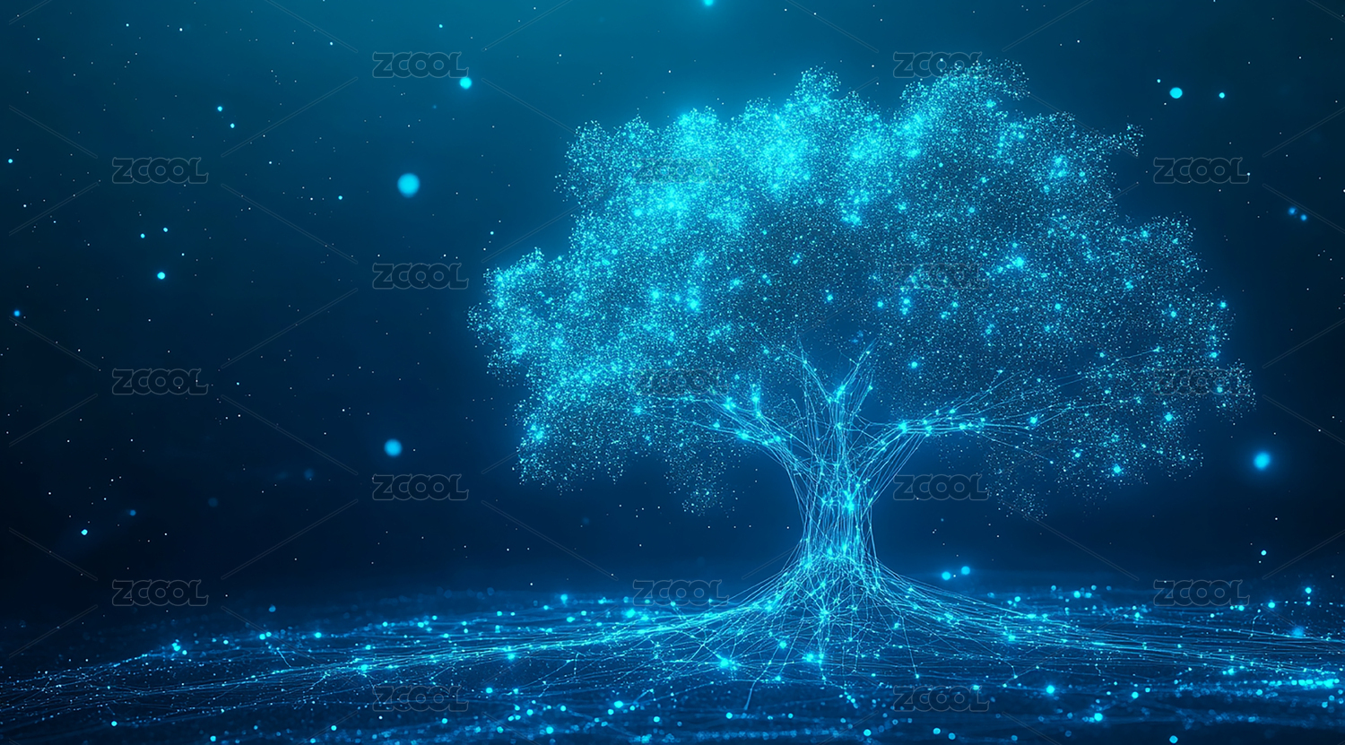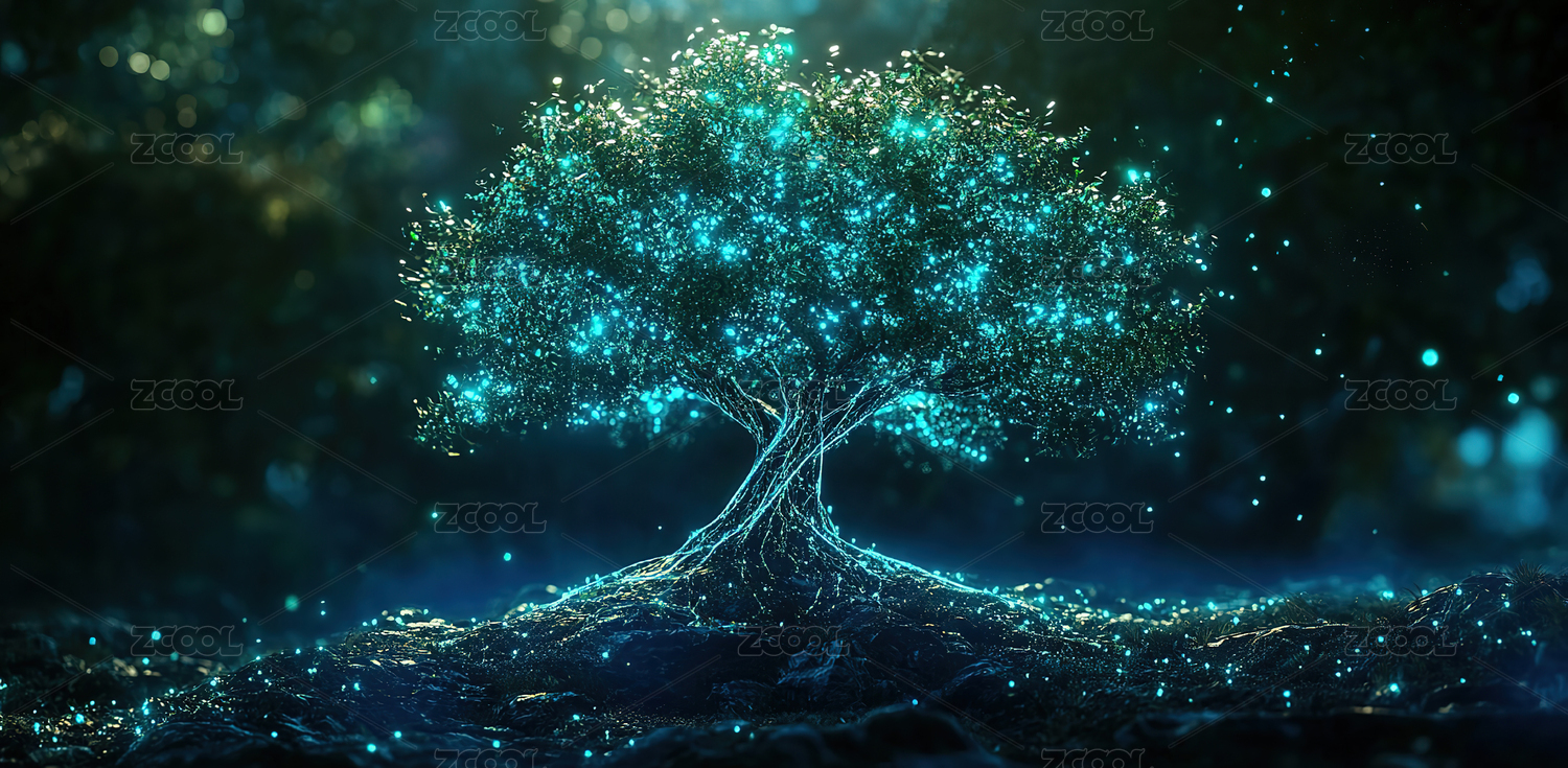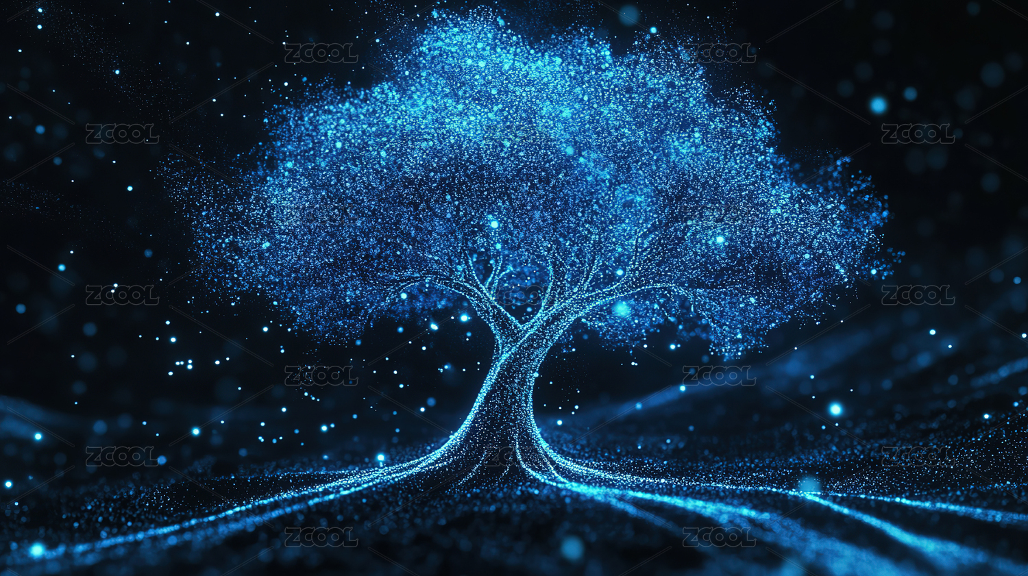 科技树,光影,蓝色粒子,粒子,科技粒子,发光树,梦幻大树,梦幻,创意树,未来感