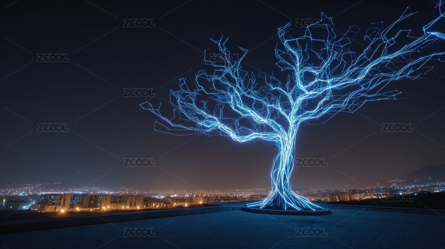 科技树,光影,蓝色粒子,粒子,科技粒子,发光树,梦幻大树,梦幻,创意树,未来感