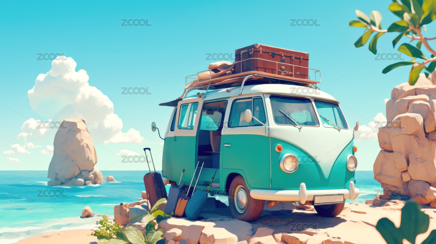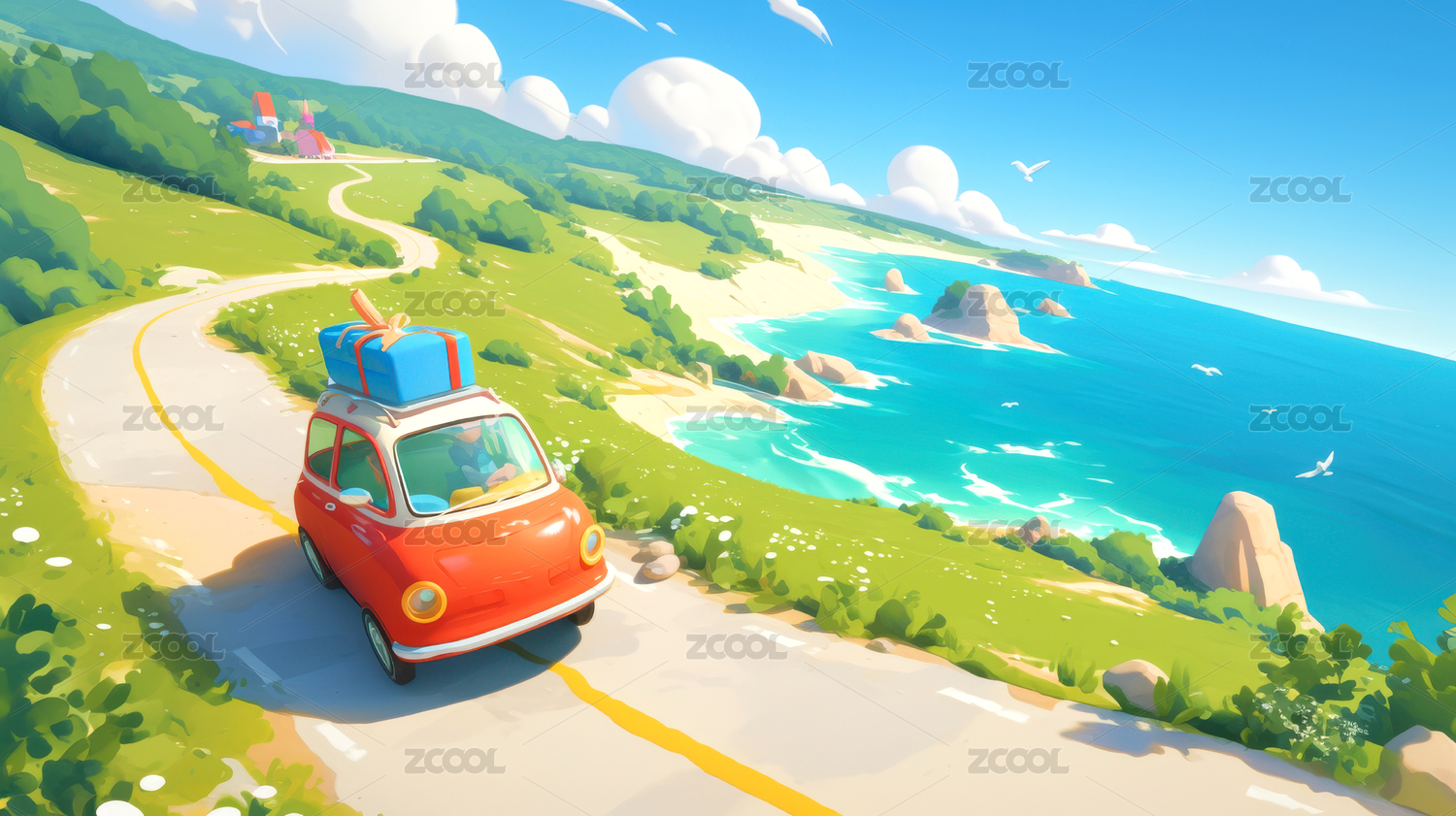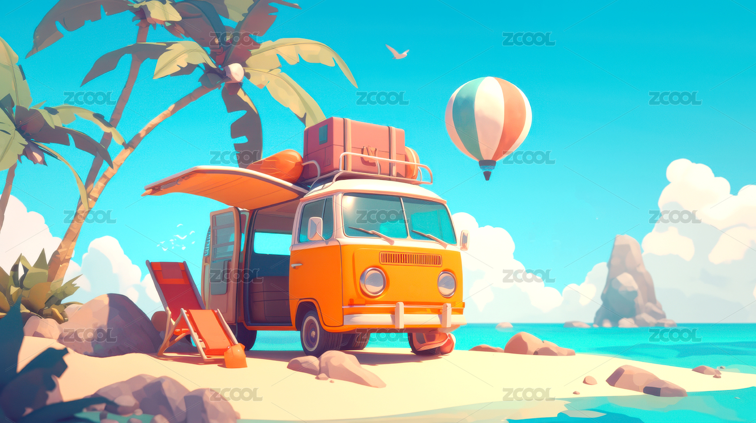 卡通,郊游,度假,旅行,插画,3D,立体,三维图形,场景,卡通场景