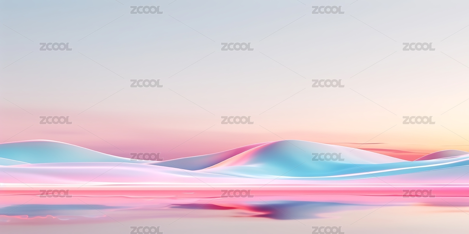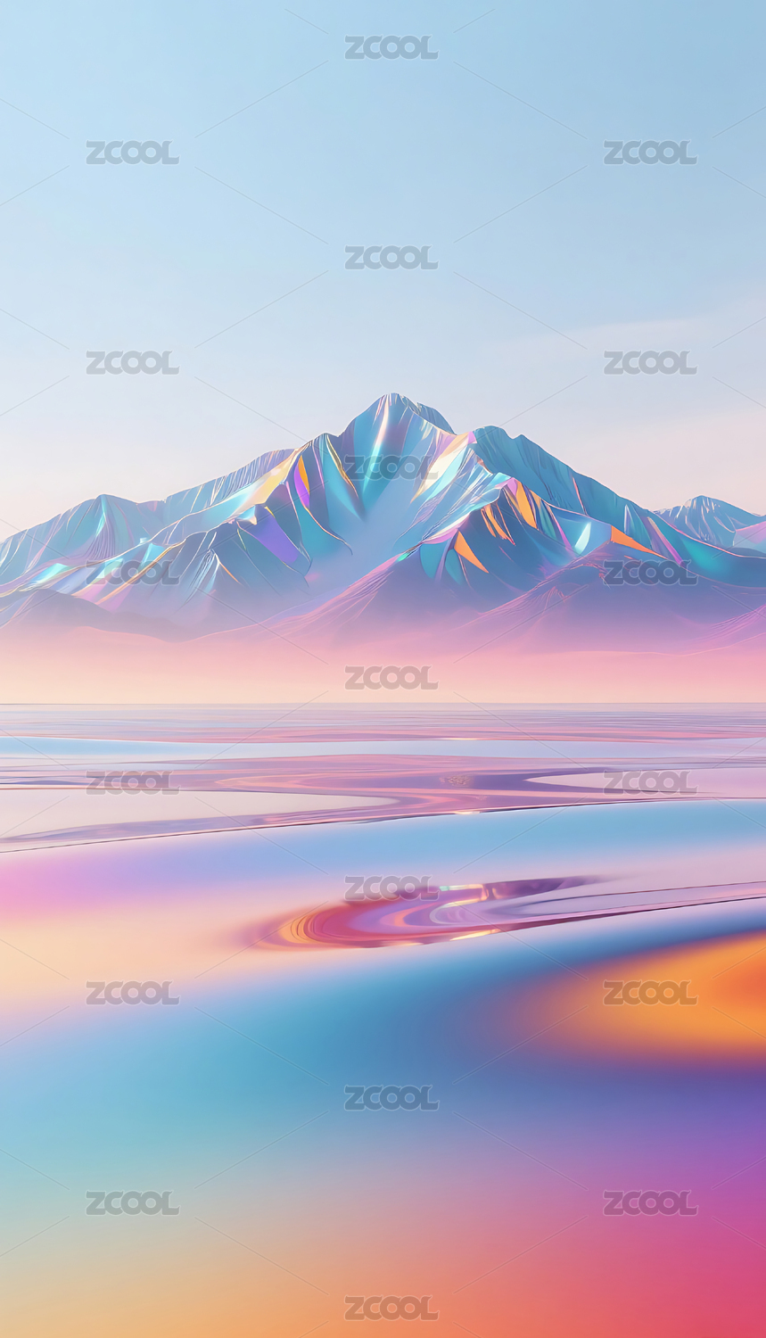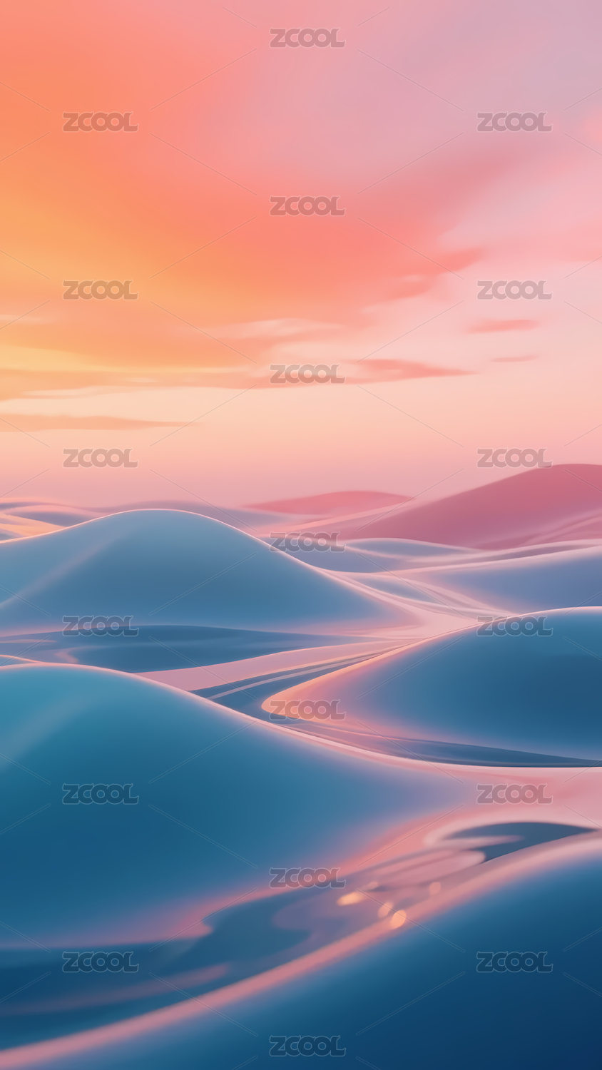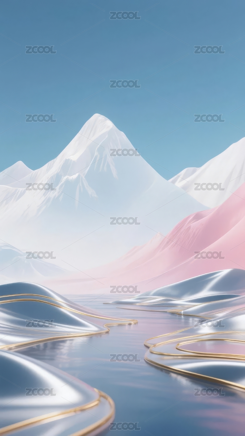 线条,光影,雪山,流光,梦幻,色彩,粉蓝,仙境