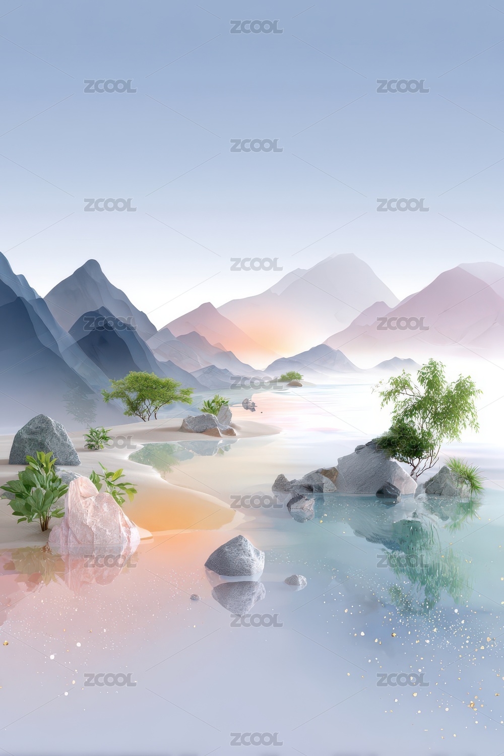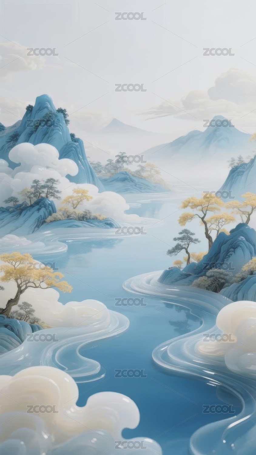 云海,光影,梦幻,亮光,薄雾,山峦,金树,森林,飘渺