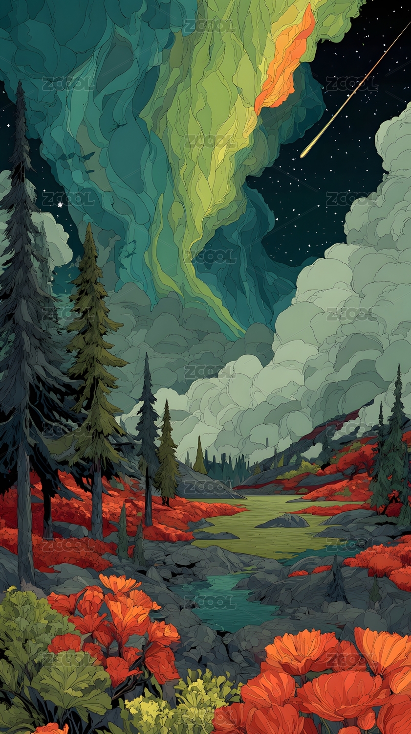 手绘唯美的抽象艺术感夜晚天空风景插画